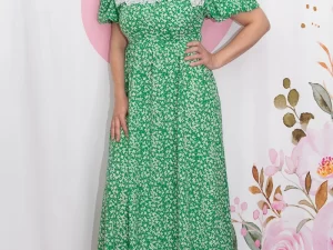 Rochii Prețul inițial a fost: 250,0 lei.180,0 leiPrețul curent este: 180,0 lei.Rochie elegantă verde imprimeu Floral | Rochie lungă de nașa mărimi mari | OXL 2XL 4XL | 399 – 300 lei