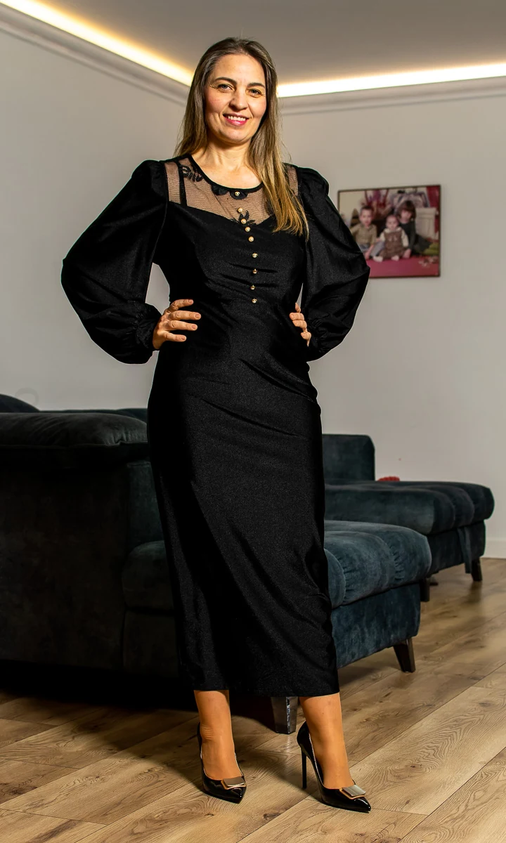 Rochie neagra eleganta | rochie neagra midi eleganta | 185 lei