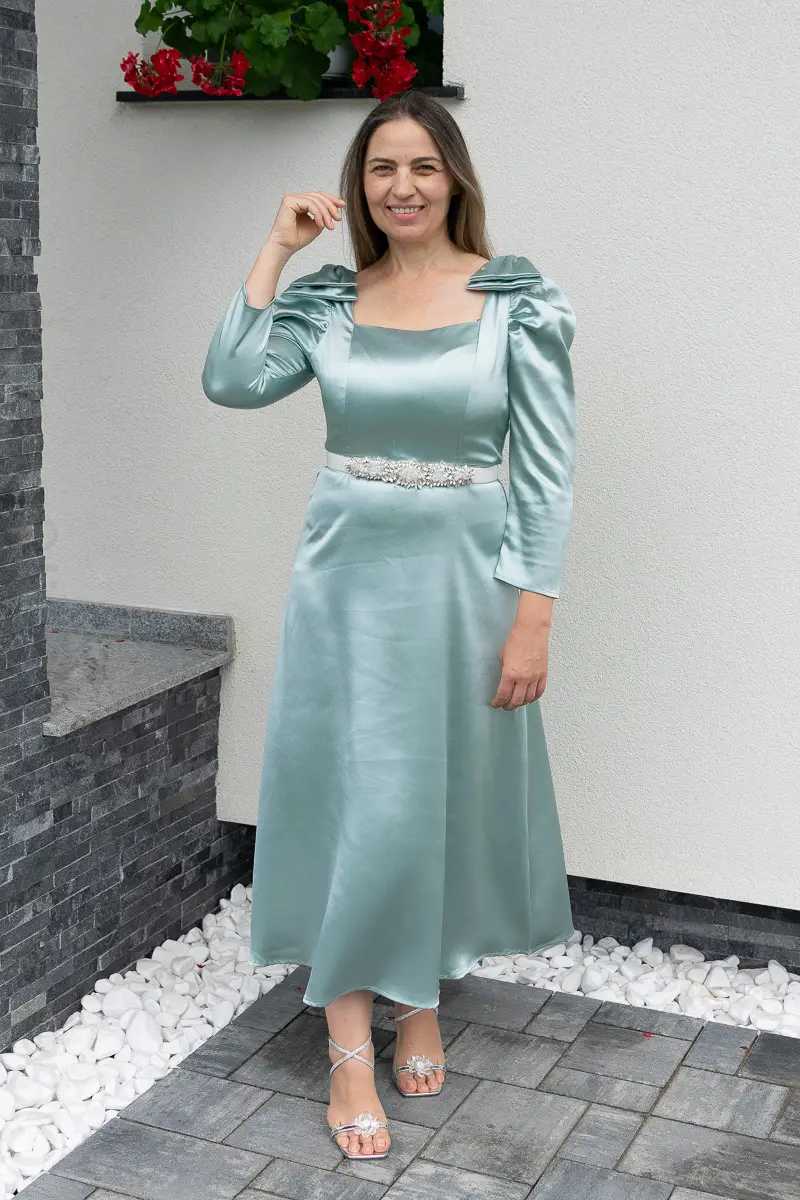 Rochie satin verde | Rochii marimi mici elegante | 250 – 230 lei