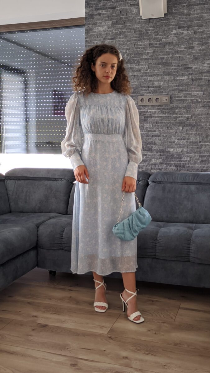 Rochie albastru turcoaz | rochie crem eleganta | 239 lei