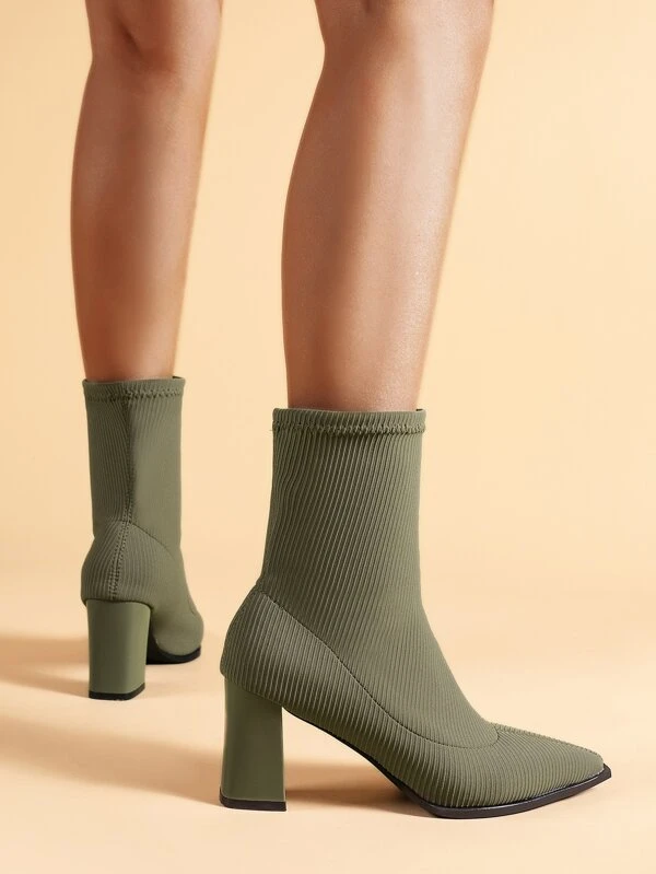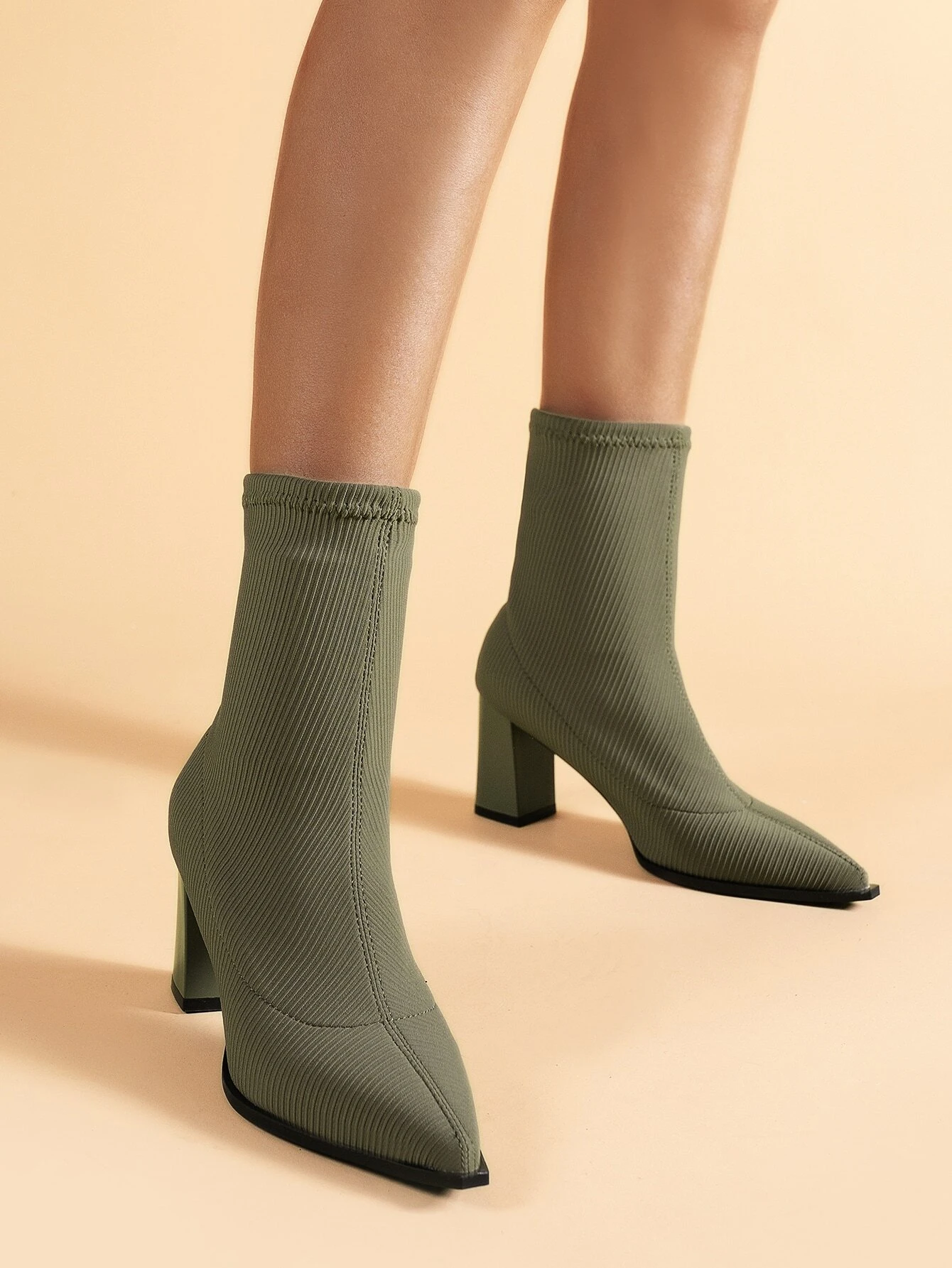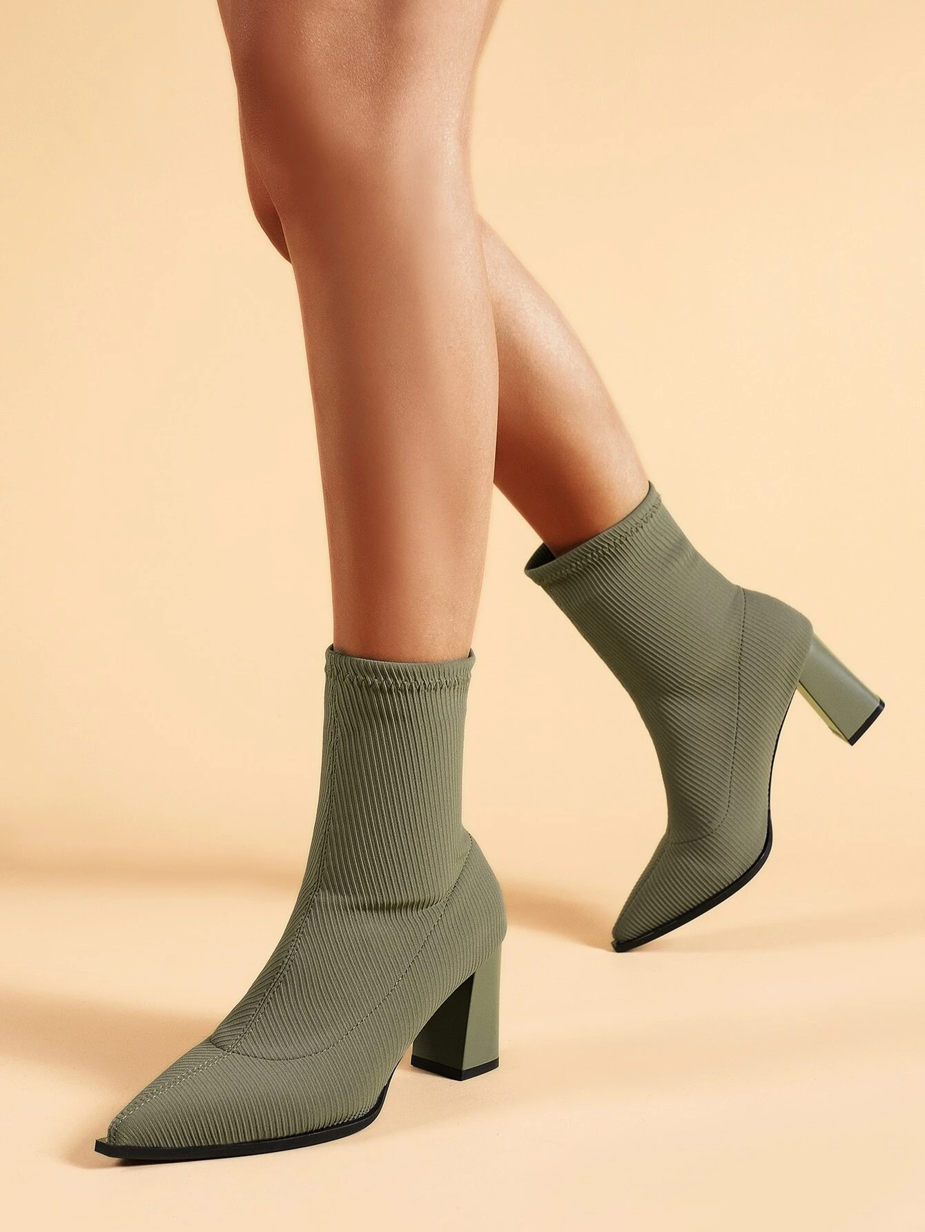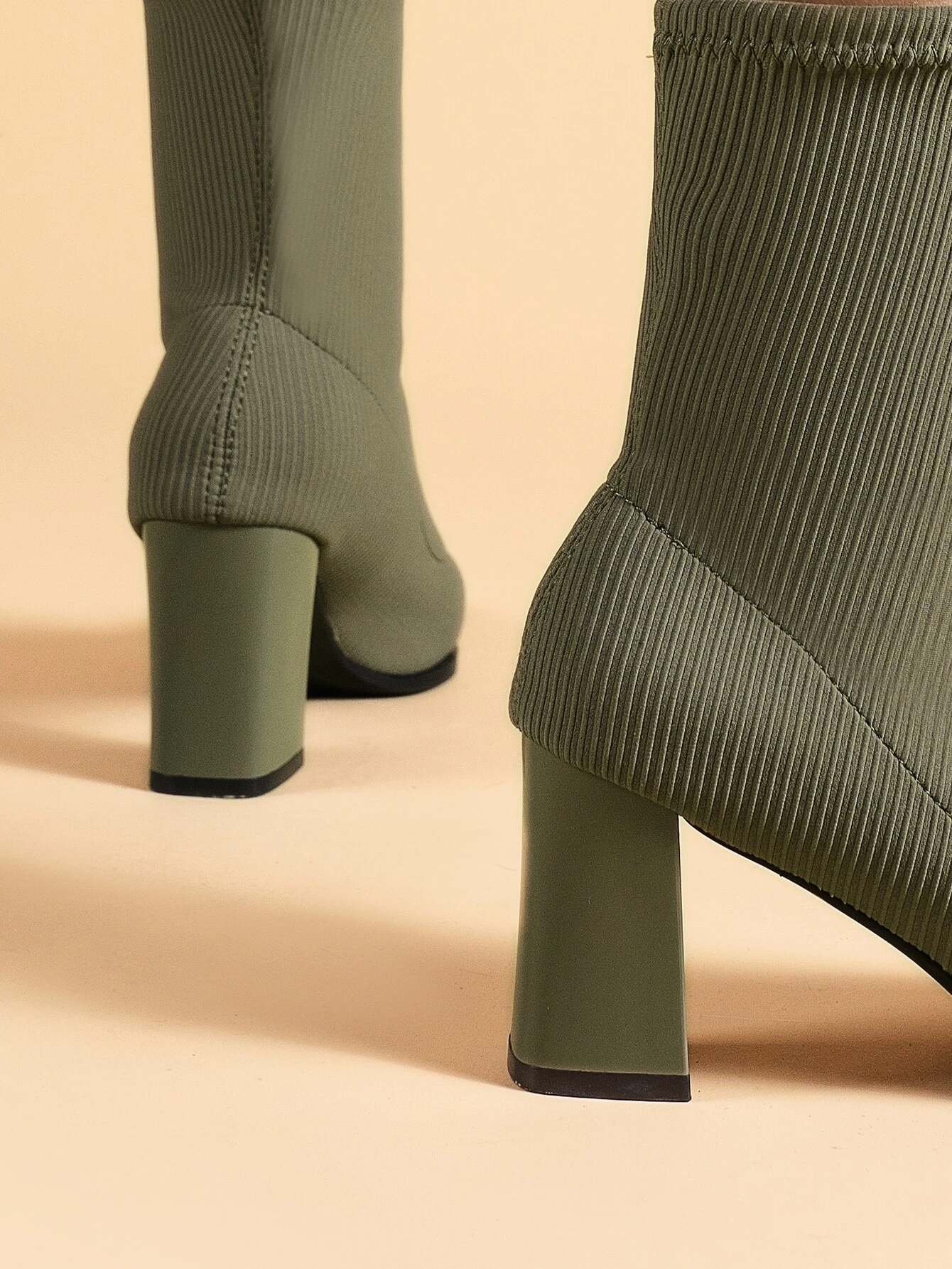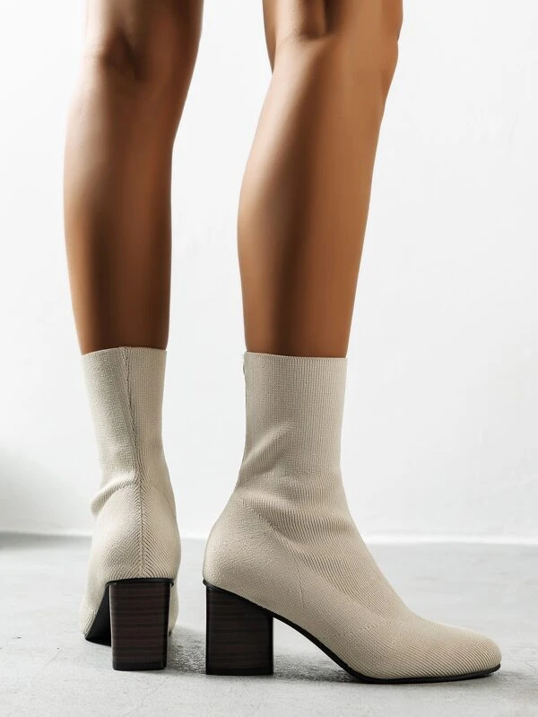 Cizme cu toc gros | cizme tip soseta | cizme bej cu toc | 200 lei