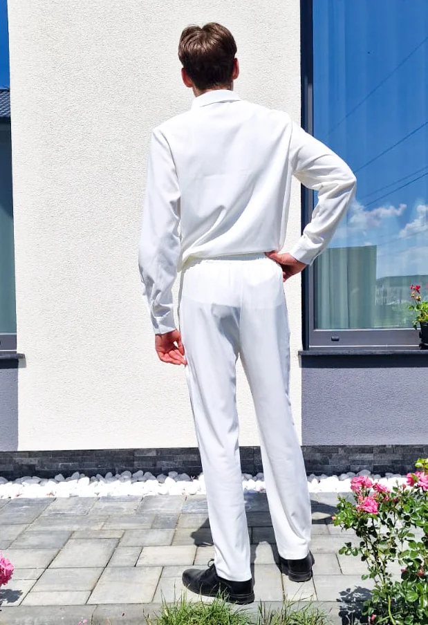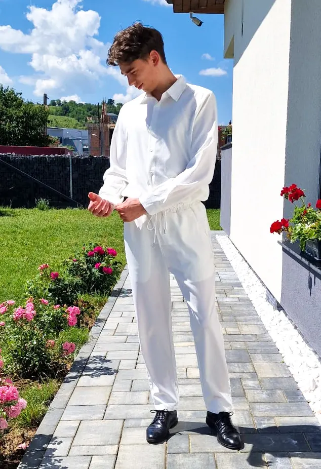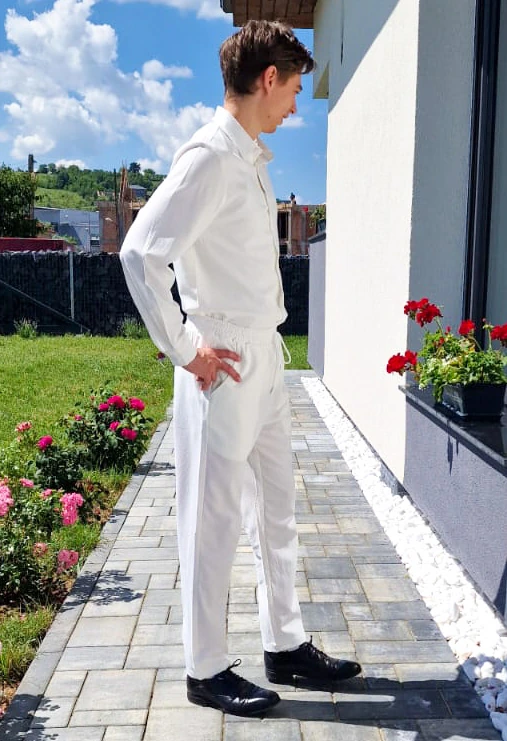 Pantaloni albi barbati | costum alb barbati | 250 lei