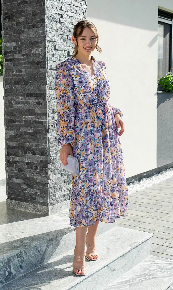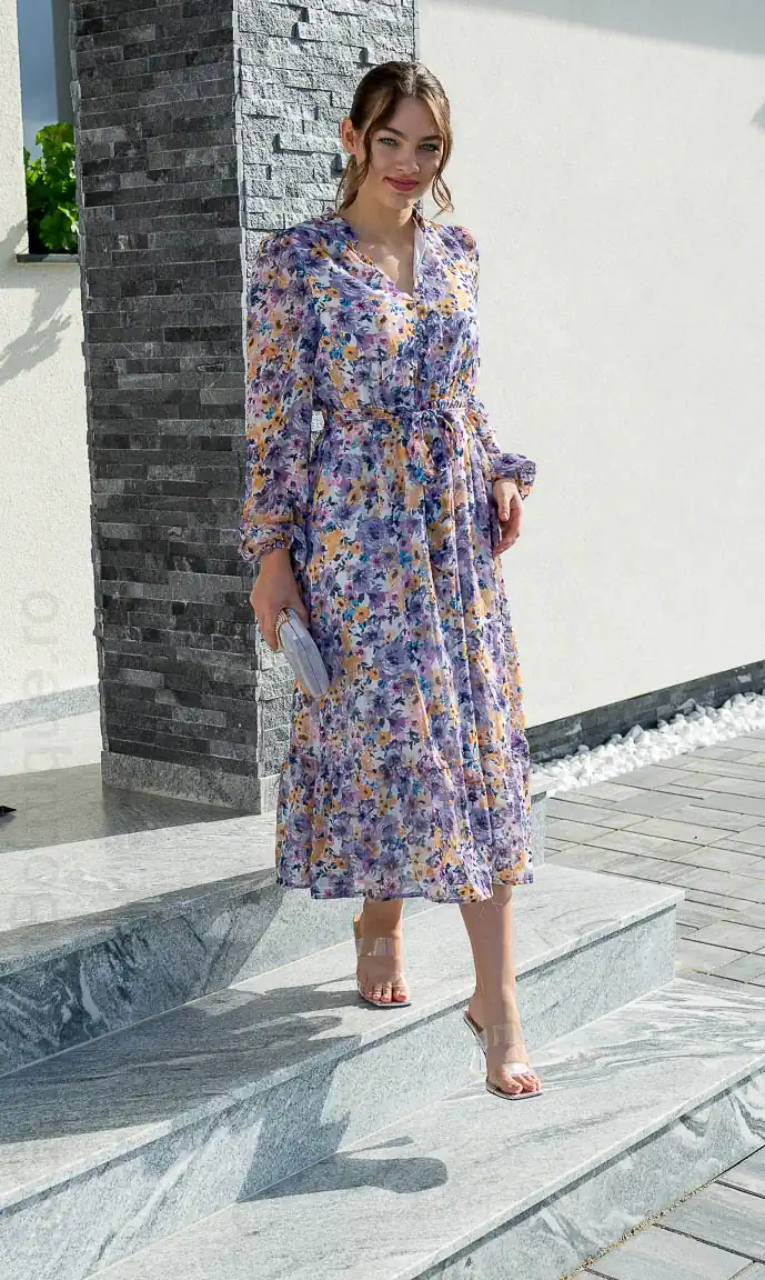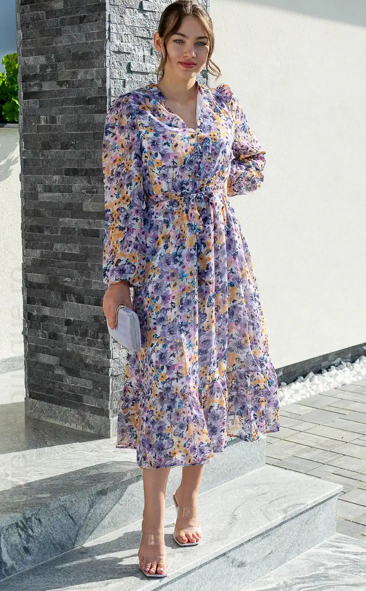 Rochie mov | rochii inflorate | Rochie mov deschis | 170 lei