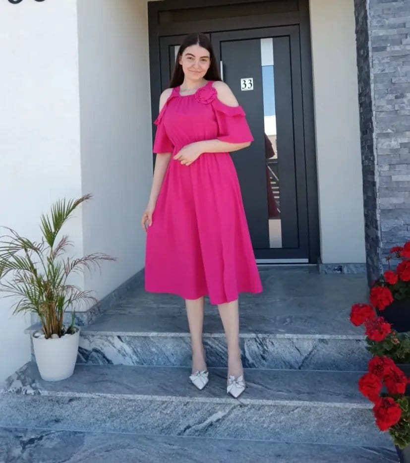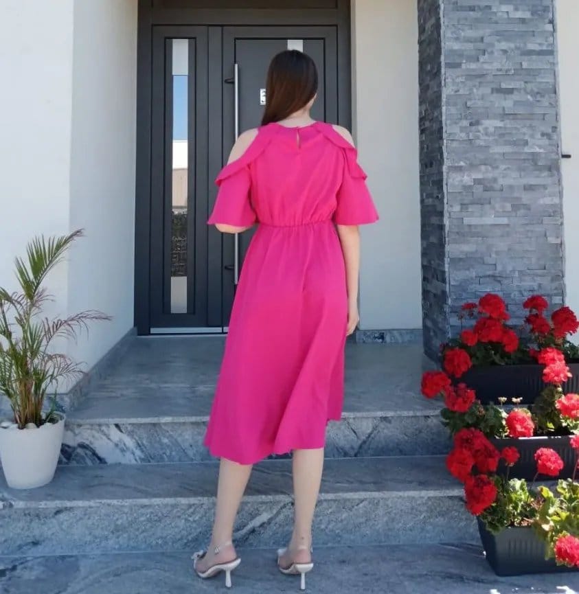 Rochii midi roz | Rochie de Damă cu Umăr deschis | 190 lei