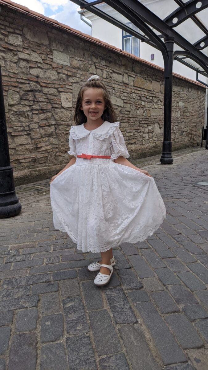 Sunt foarte mulțumită de alegerea făcută cu rochia de botez și cureaua. Recomand cu drag