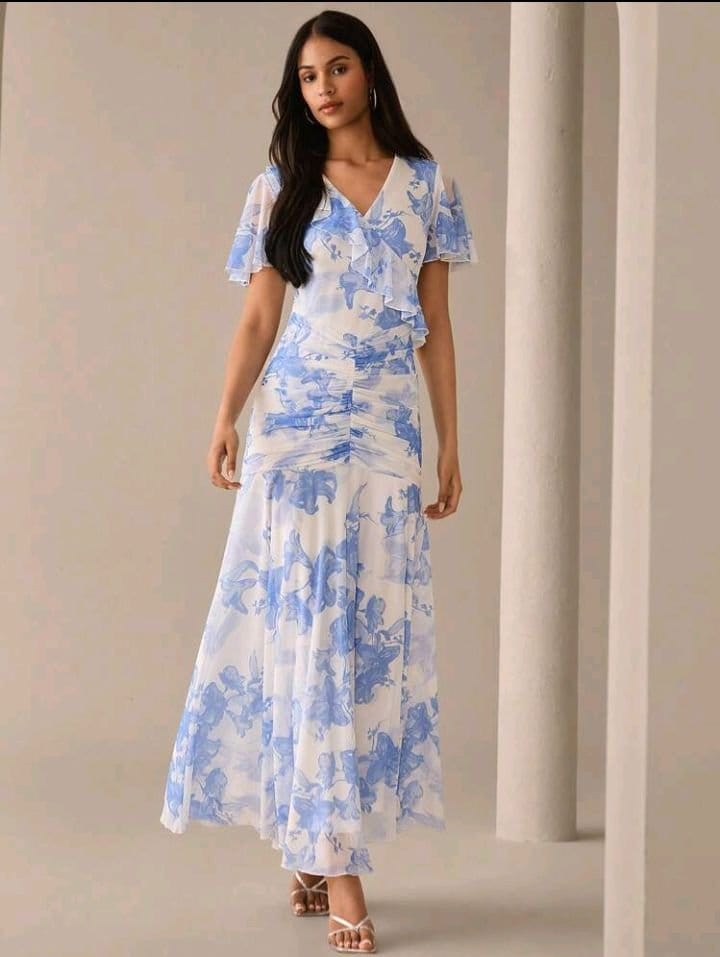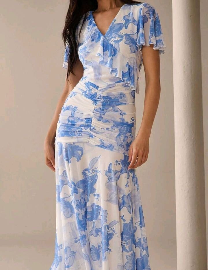Rochie Albastră Elegantă | Rochie Florală Albastră | 250lei