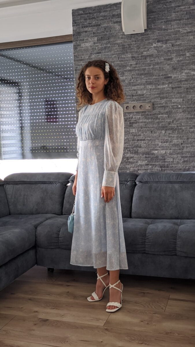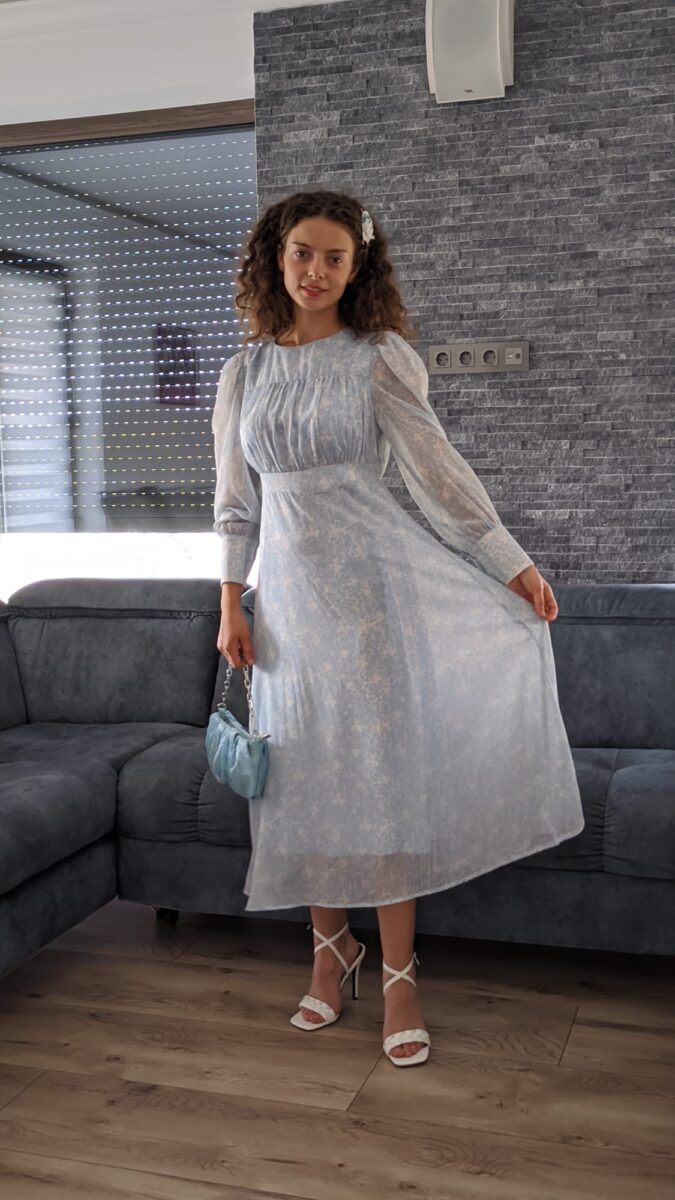 Rochie albastru deschis eleganta | Rochie cu maneci lungi de dama | 210 lei