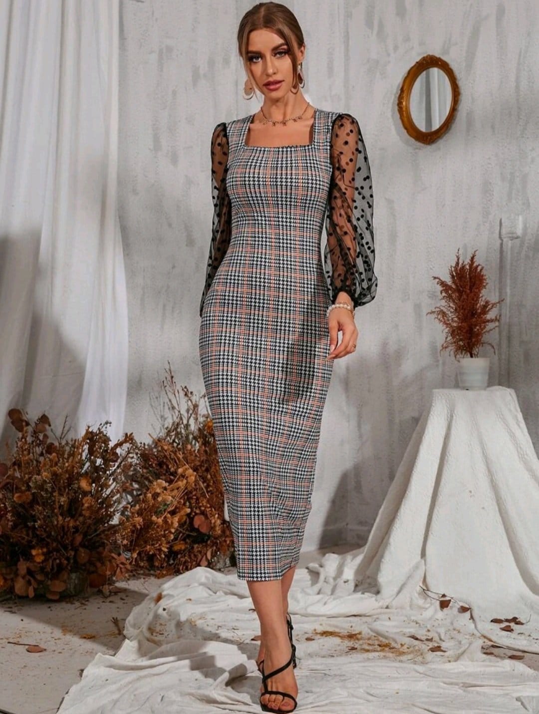 Rochie creion elastica | Rochie maneci dantelă | 150 lei