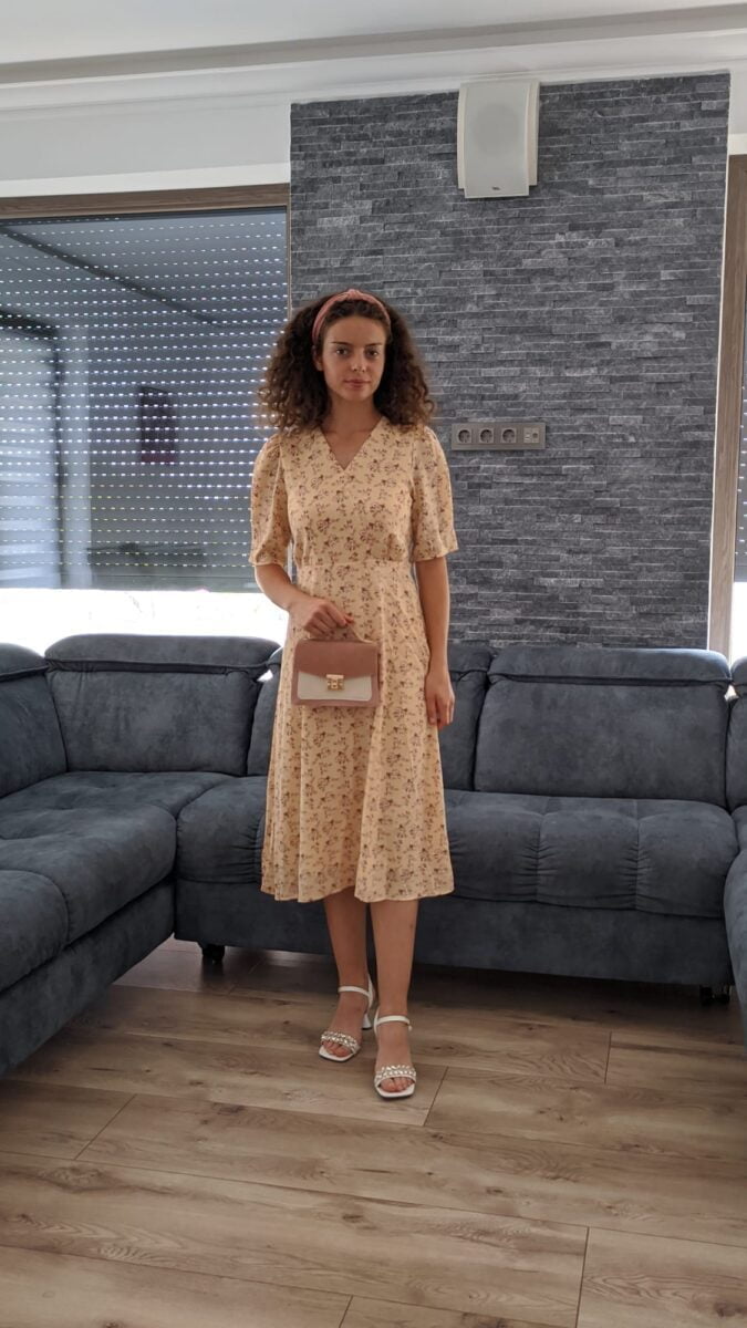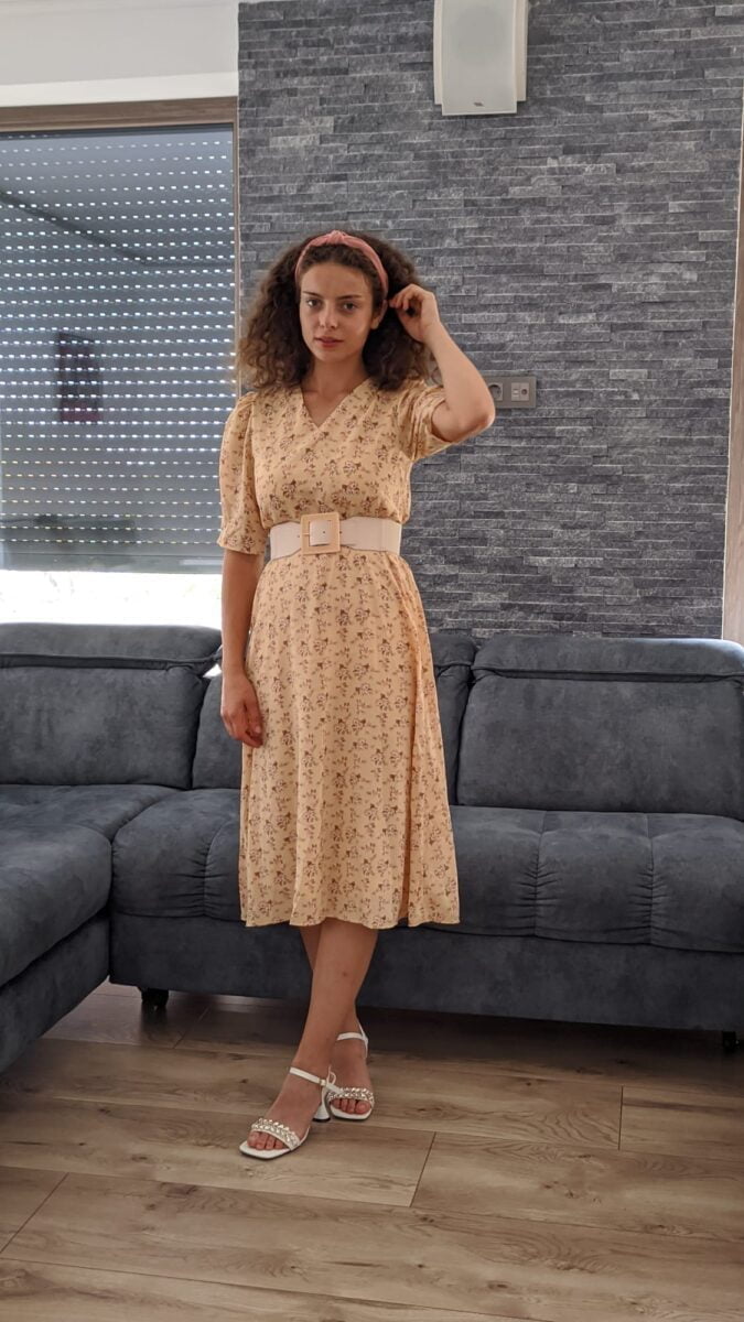 Rochie crem cu flori roz | Rochie de vara marimi mici | 150 – 130 lei