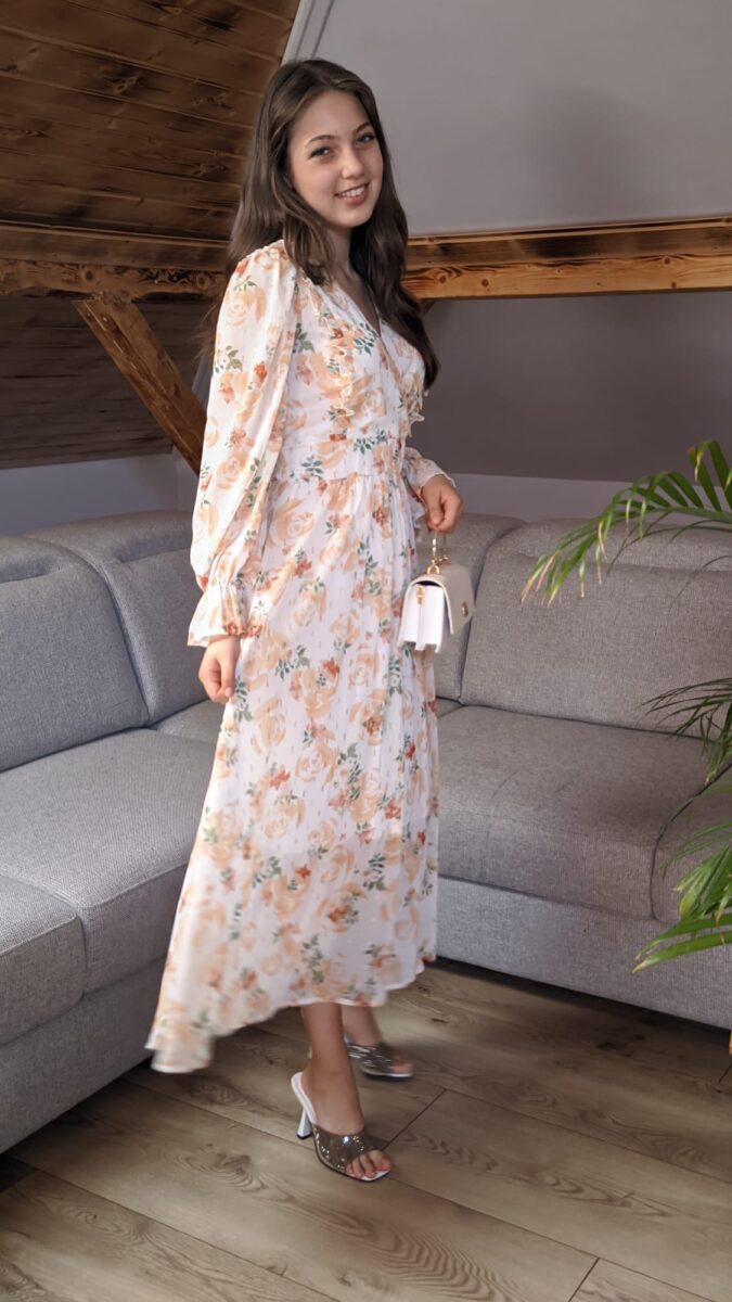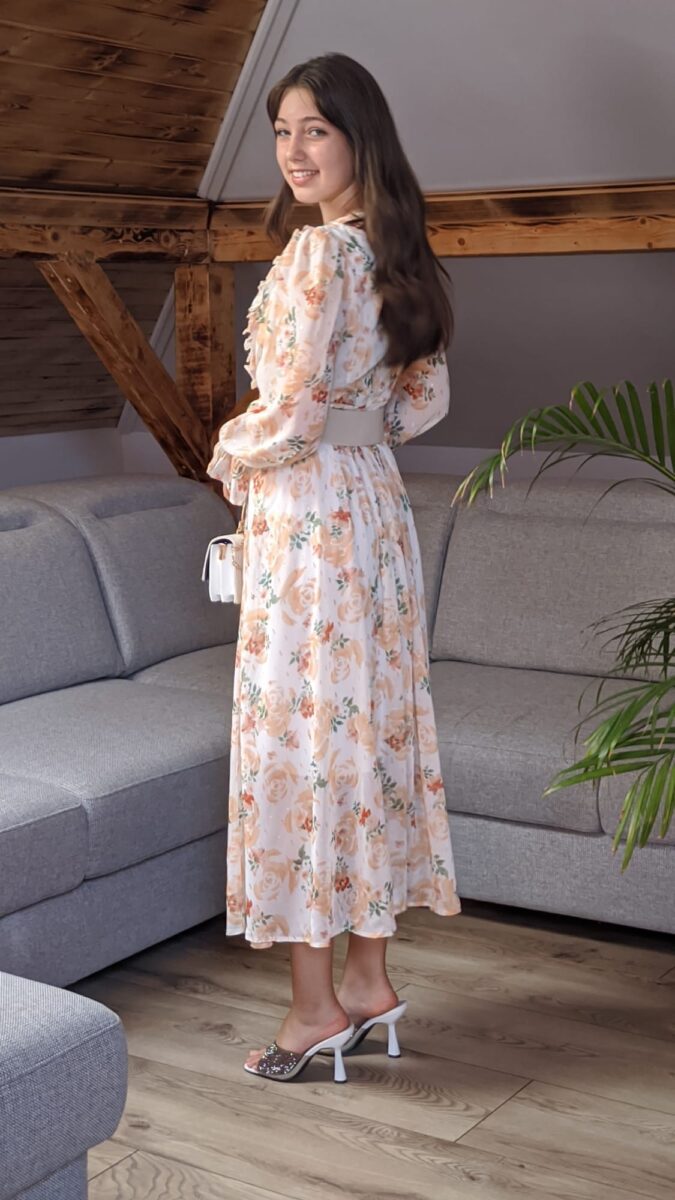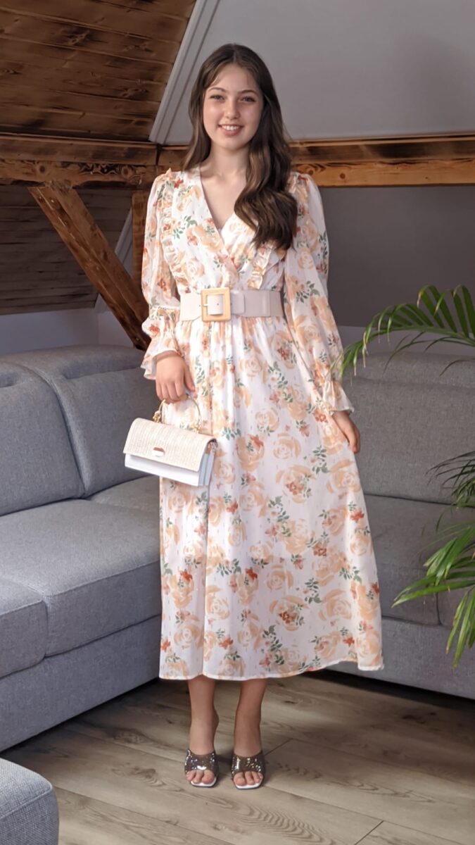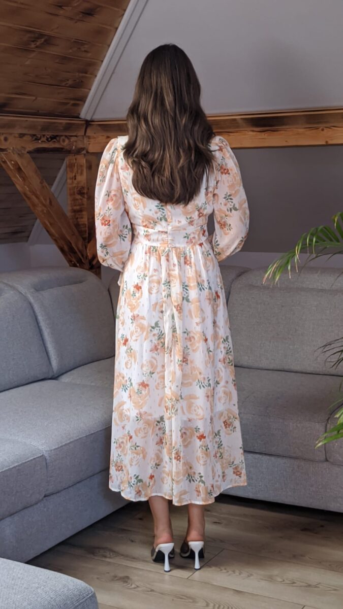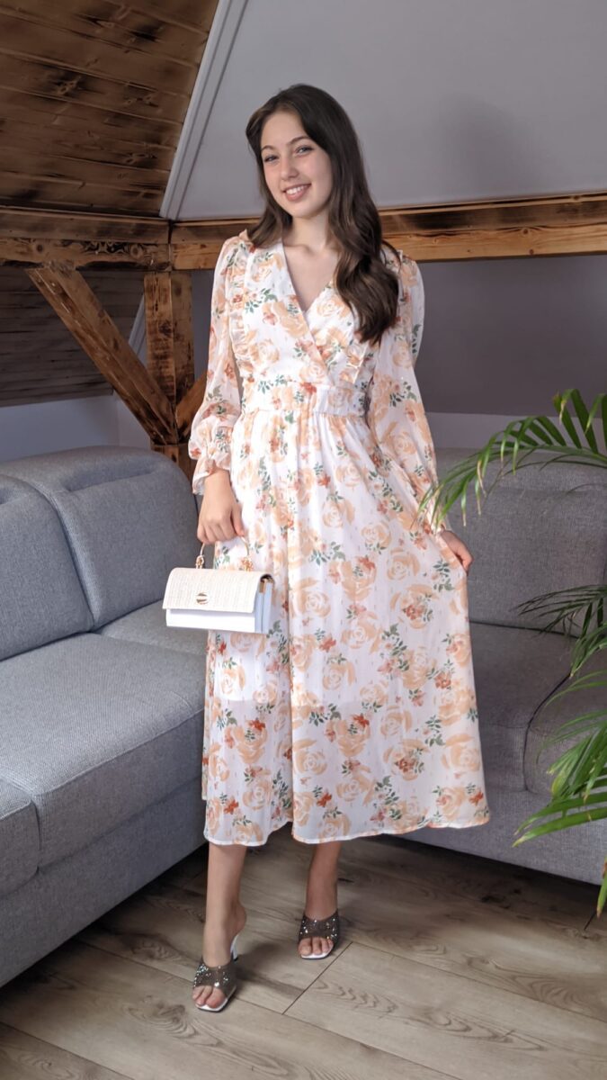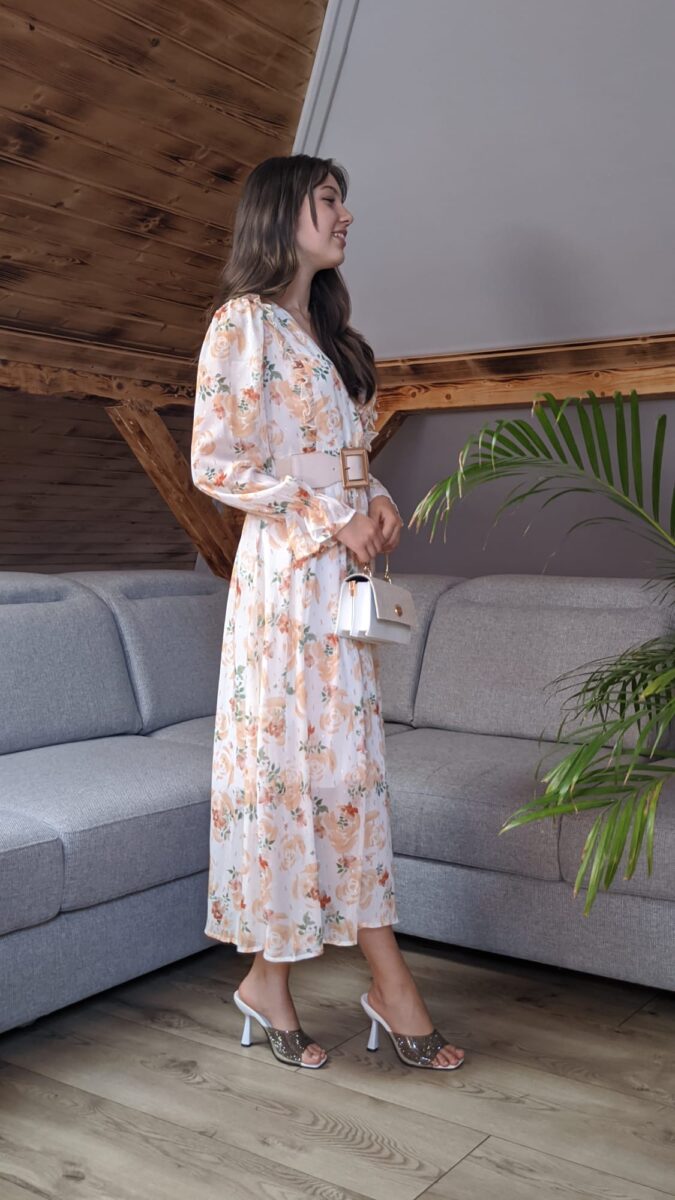 Rochie cu volane elegante | Rochie cu imprimeu portocaliu floral | 320 – 240 lei