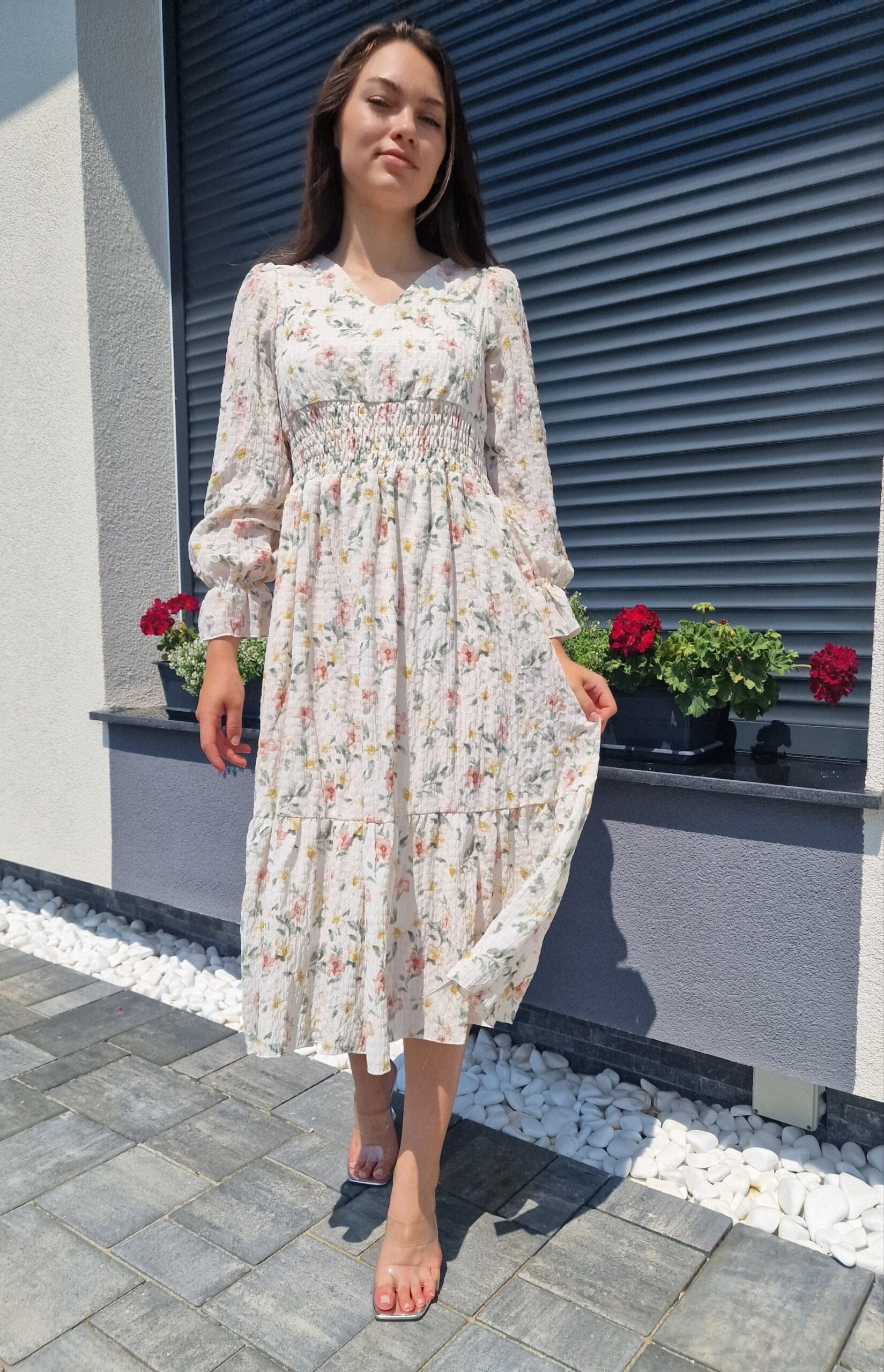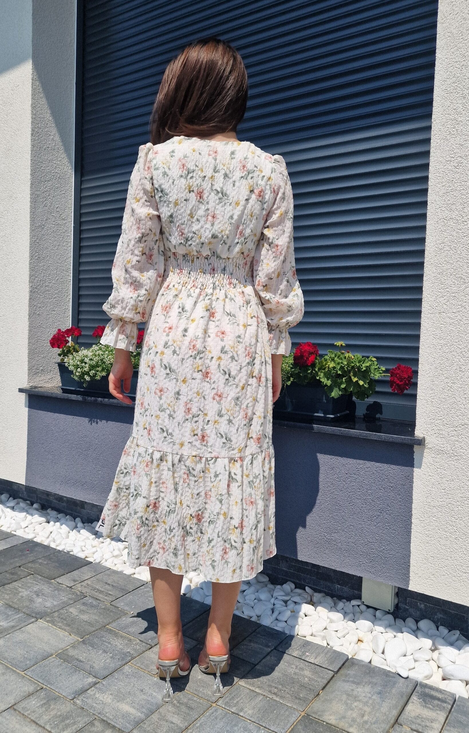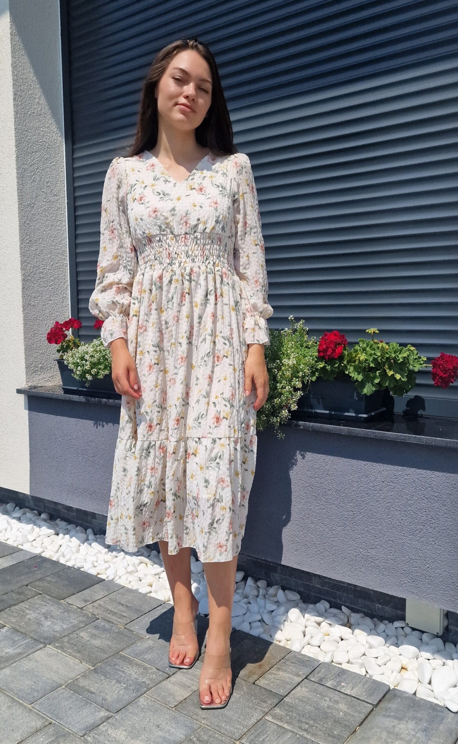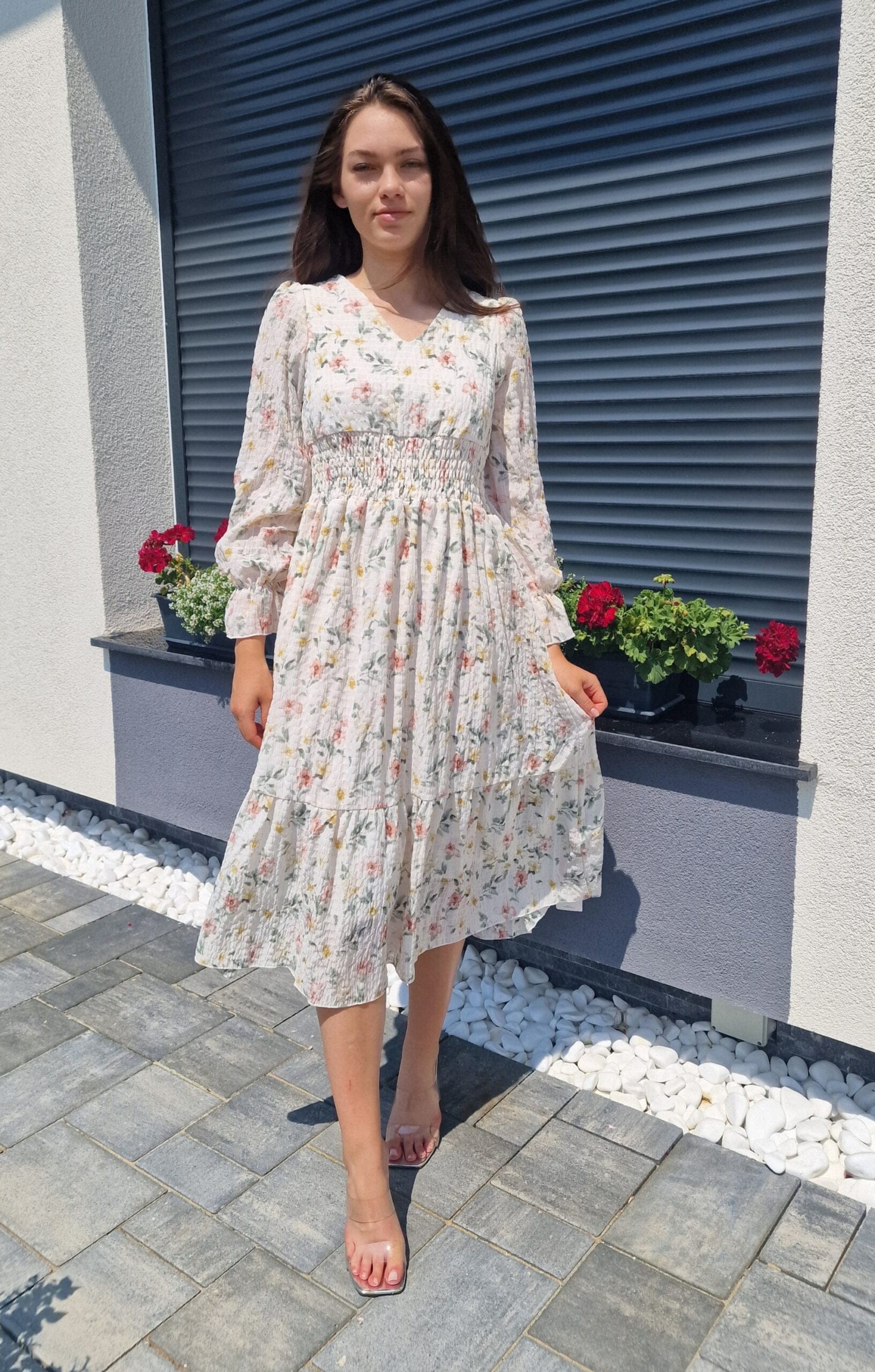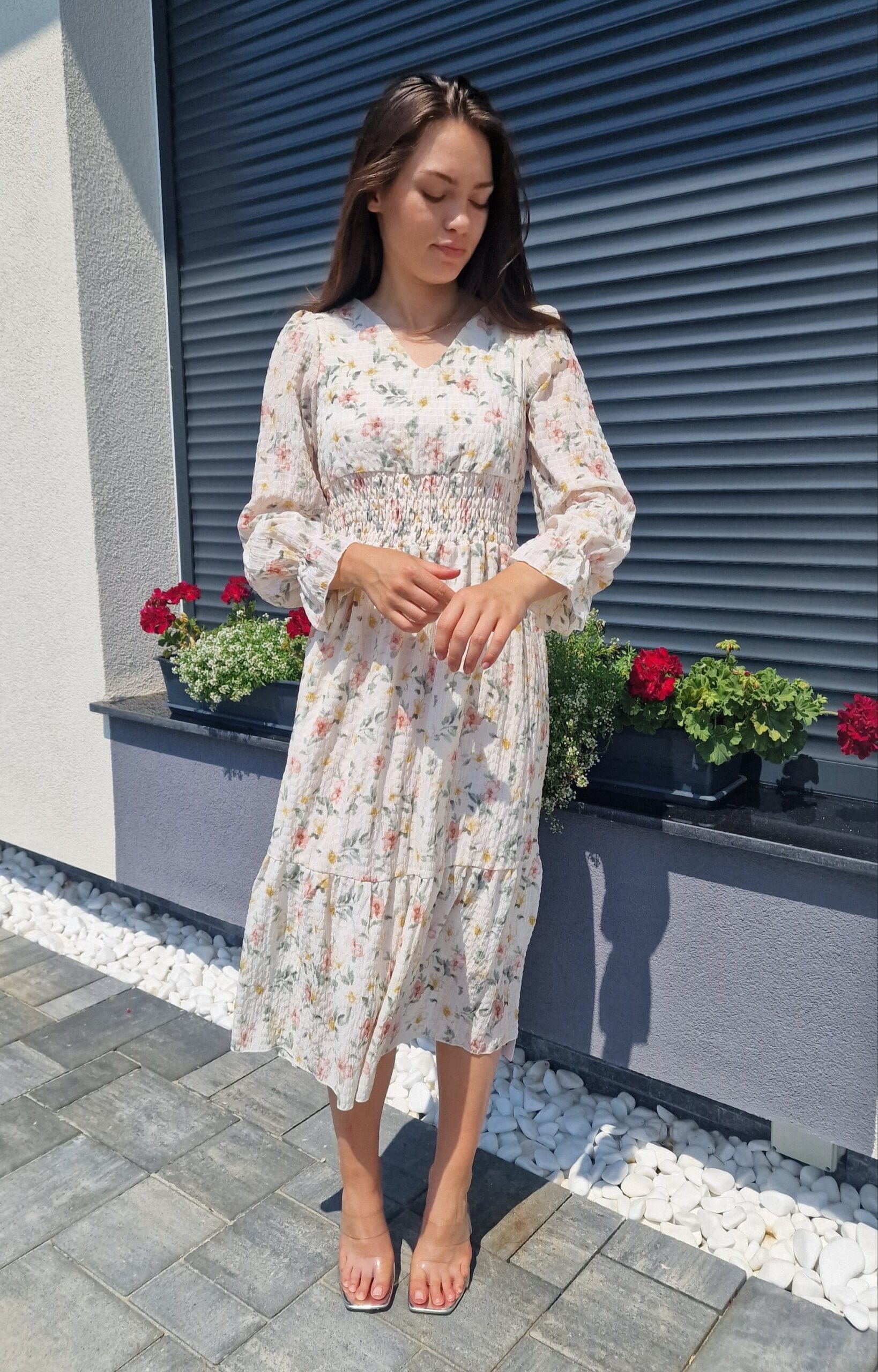 Rochie de Damă cu decolteu în V | Imprimeu Floral | Culoare Caisa | 170 lei