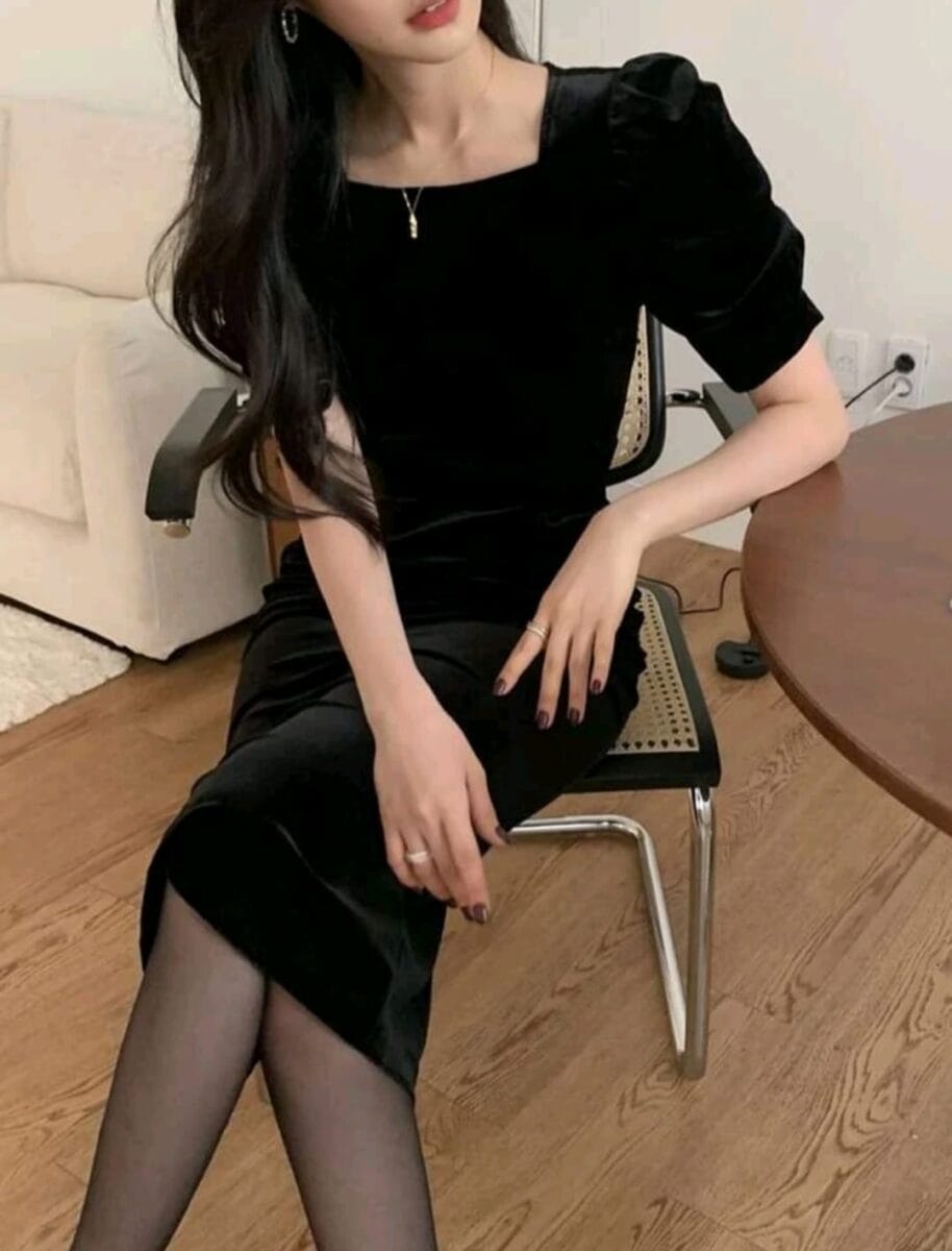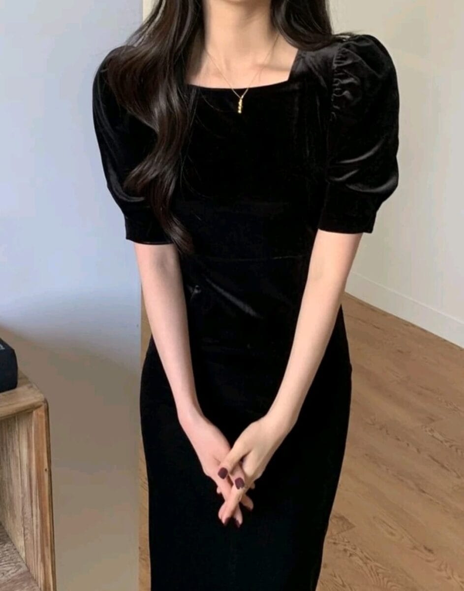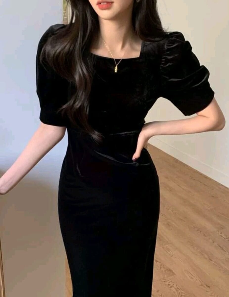 Rochie din catifea neagra | Rochie de seara neagra | Rochii marimi mici | 230 lei