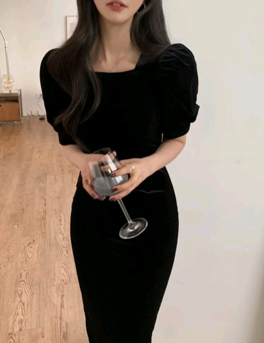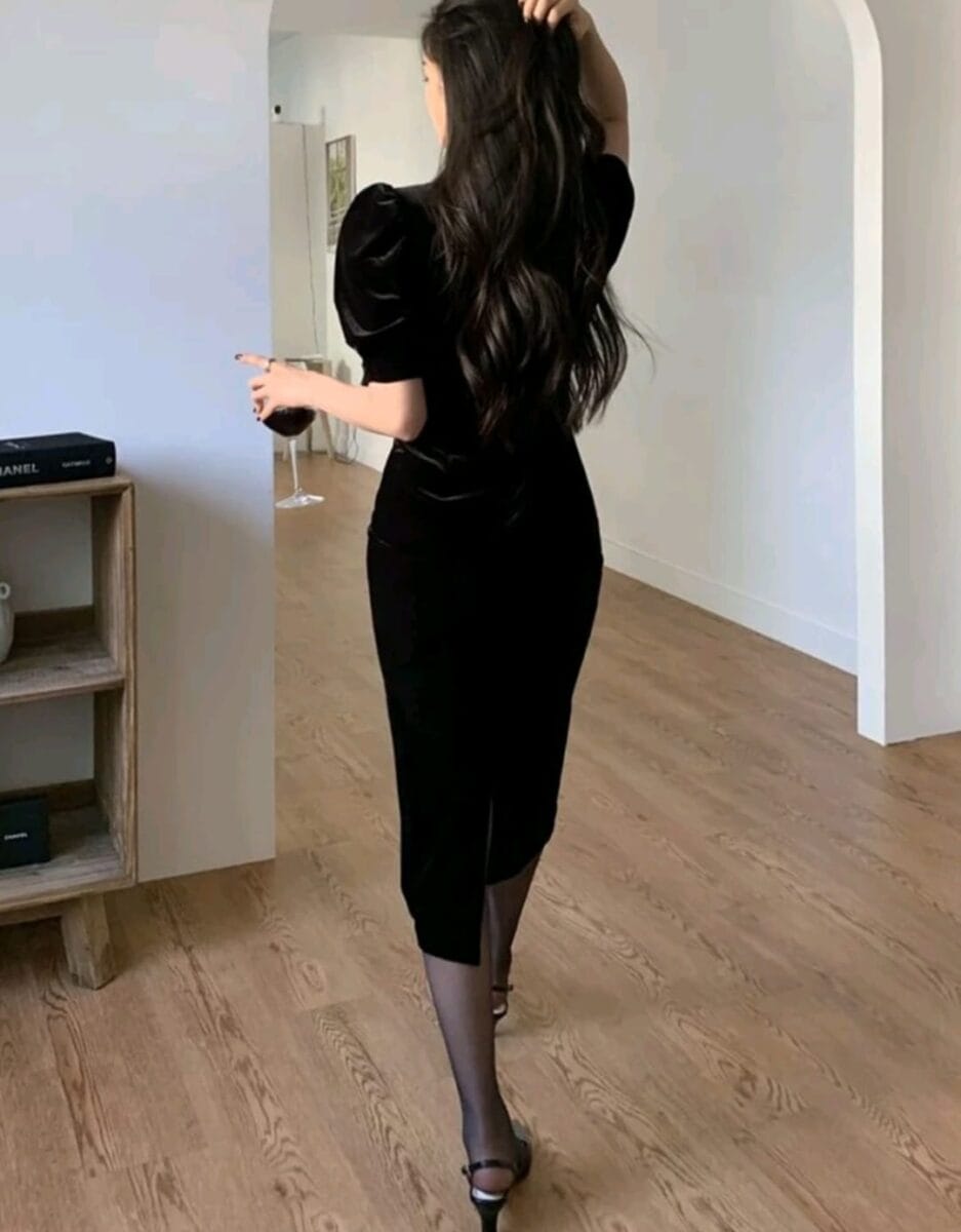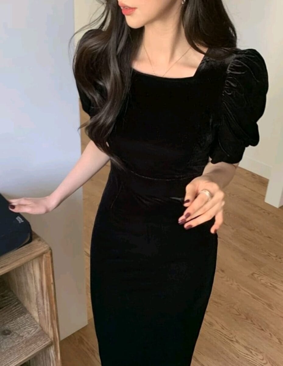 Rochie din catifea neagra | Rochie de seara neagra | Rochii marimi mici | 198 lei