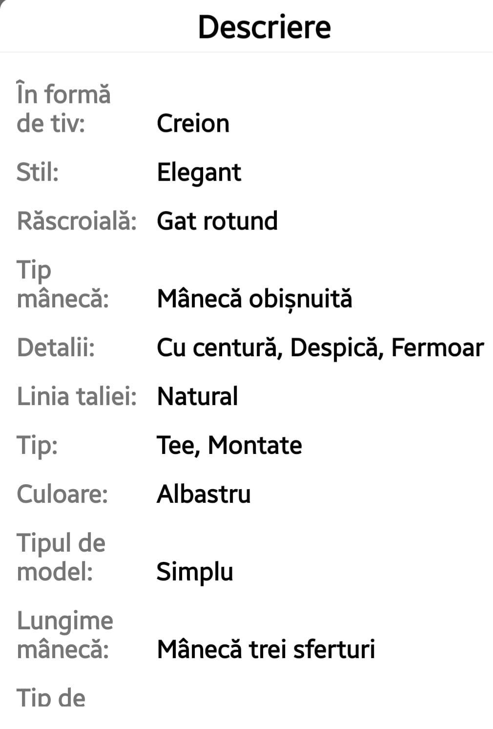 Am primit rochița, foarte frumoasă, vă mulțumesc și vă urmăresc incontinuare.Doamne ajută.