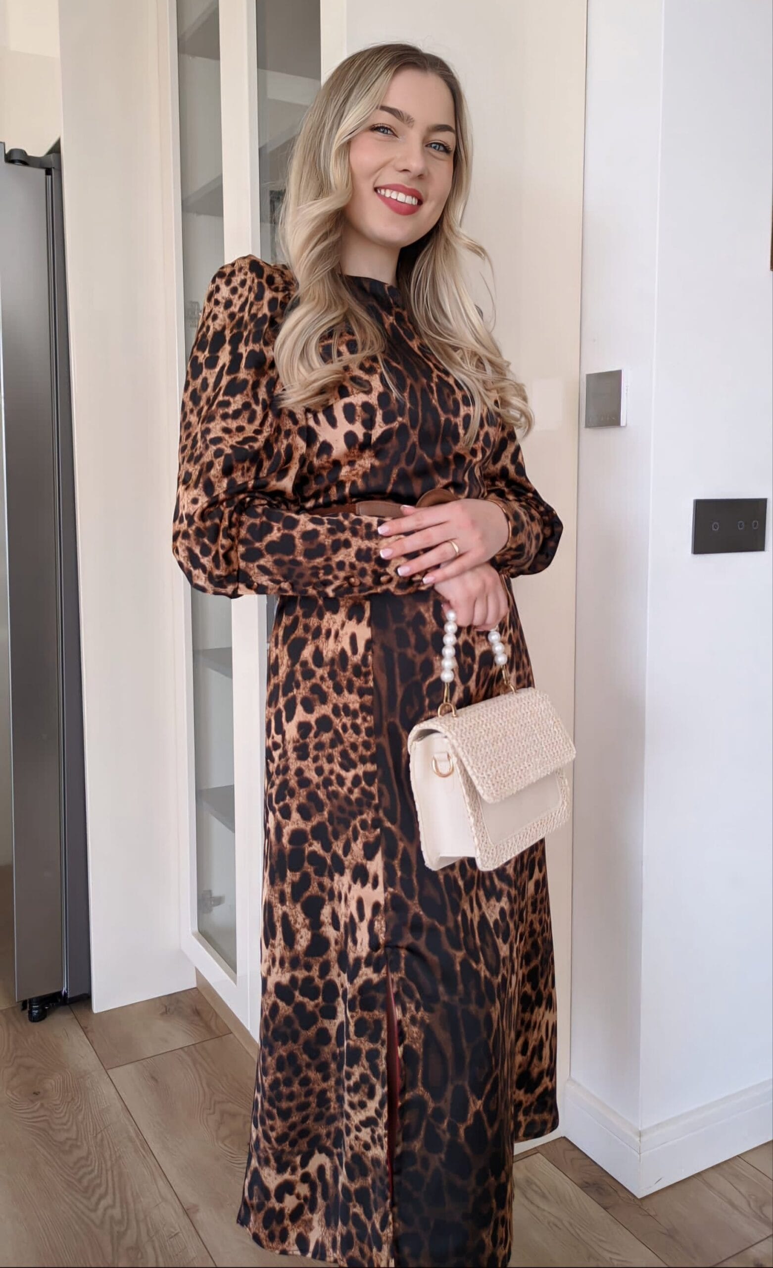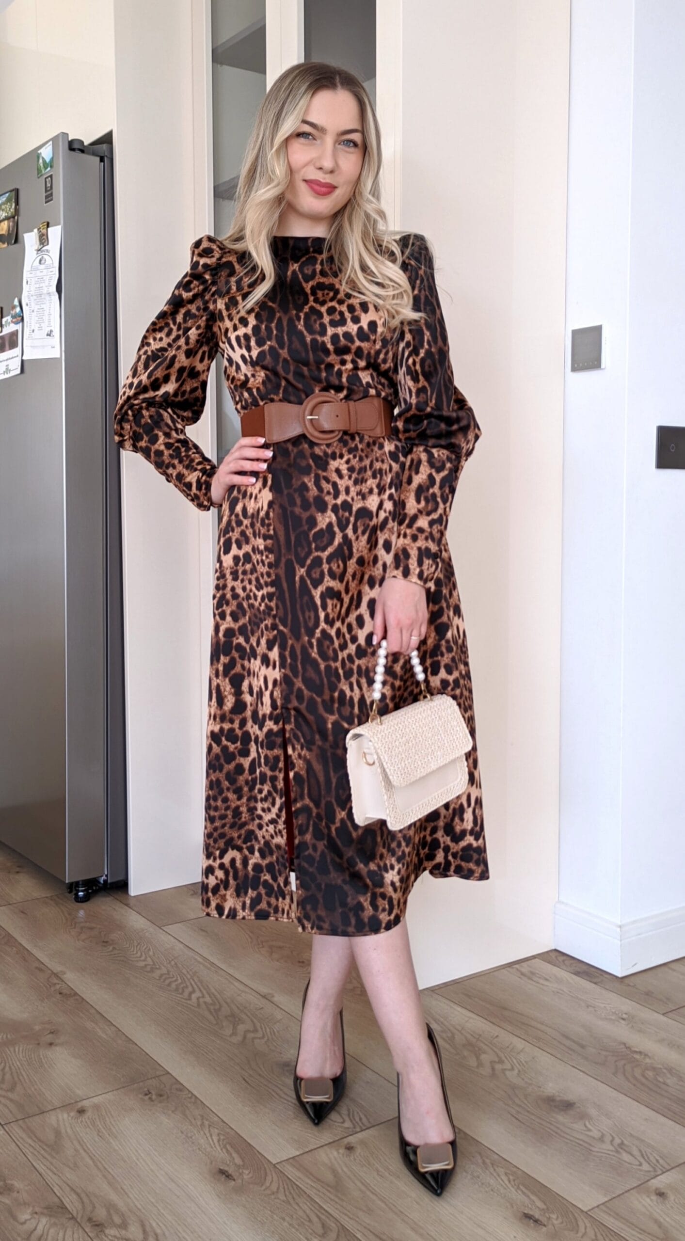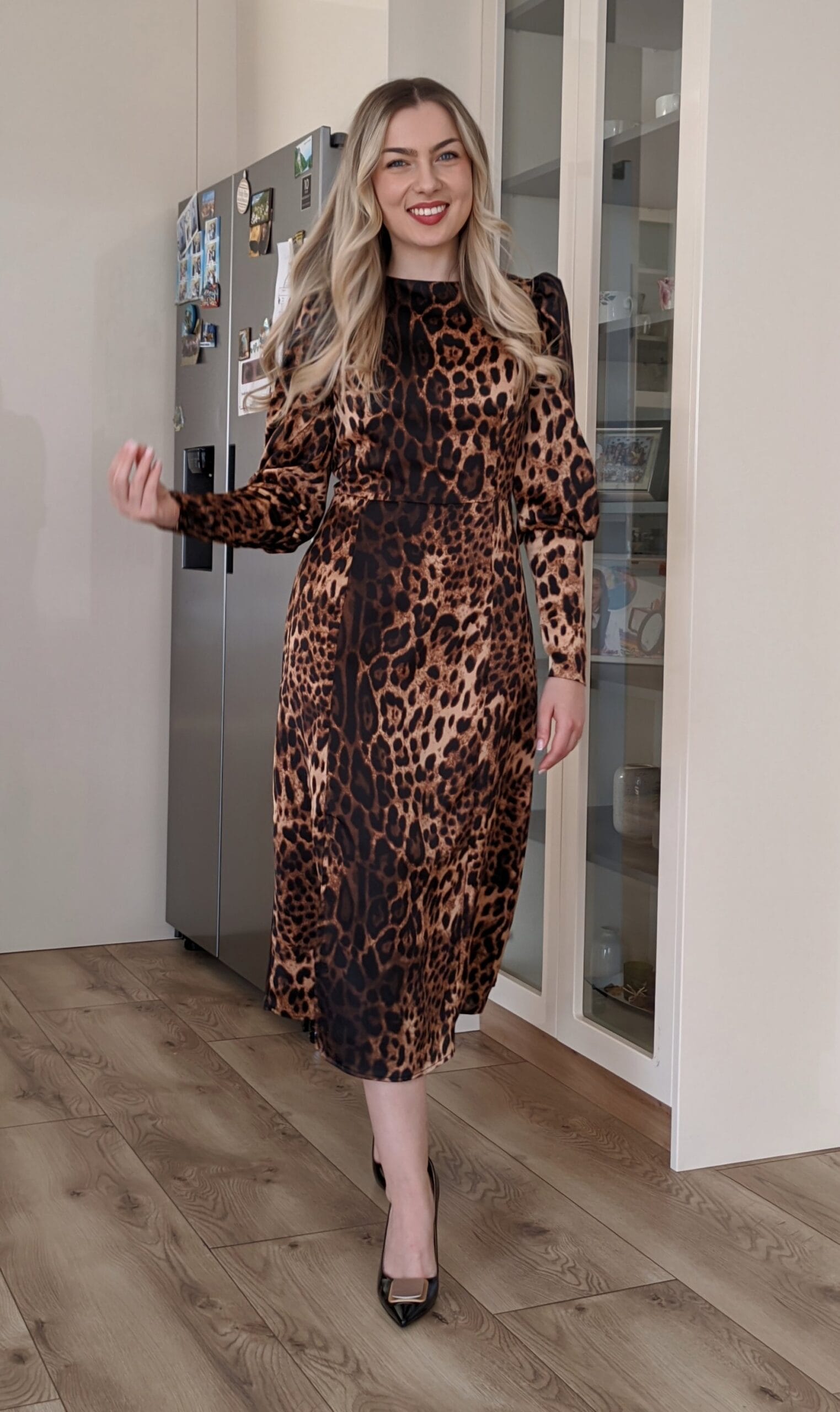 Rochie elegantă Print Leopard | Rochie midi cu Căptușeală roșie Glamur | 200 lei