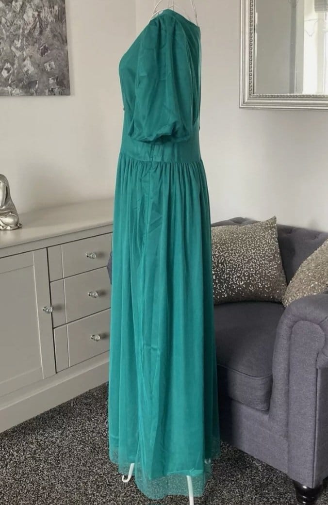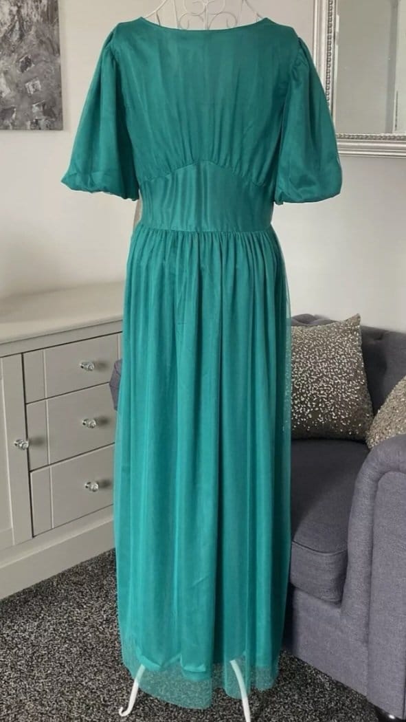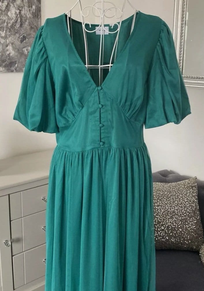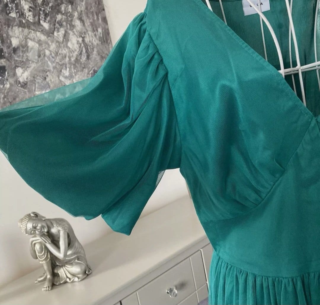 Rochie Midaxi de ocazie din tul cu mâneci scurte,cu decolteu în V,Verde smarald, 40 EU | 300 lei