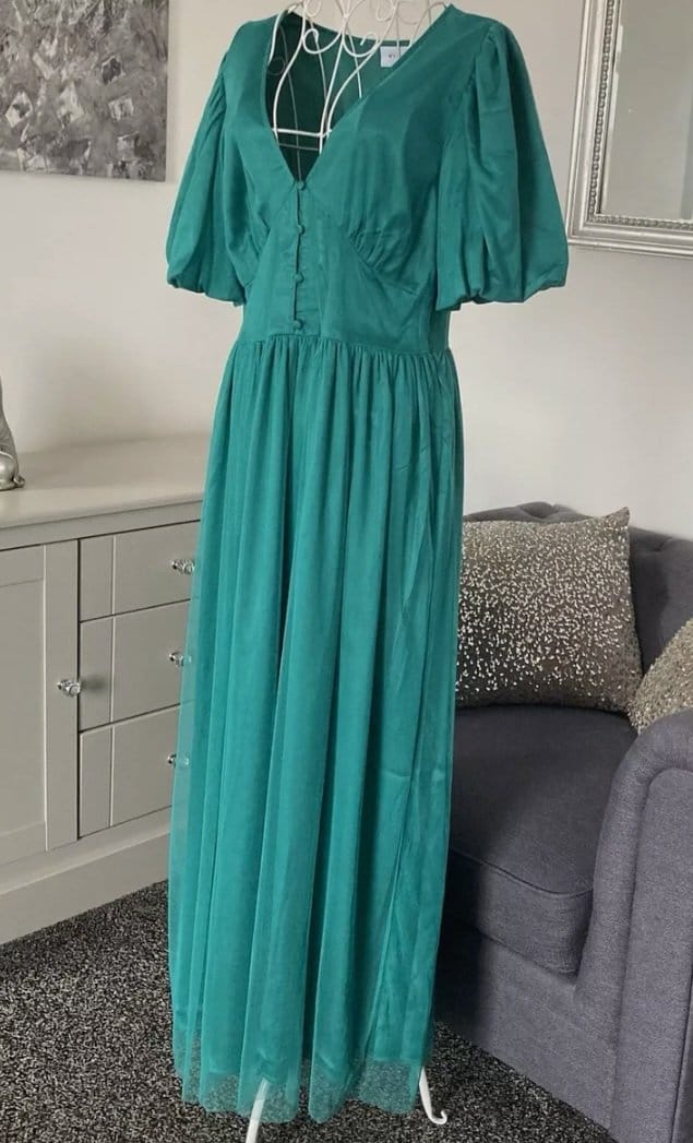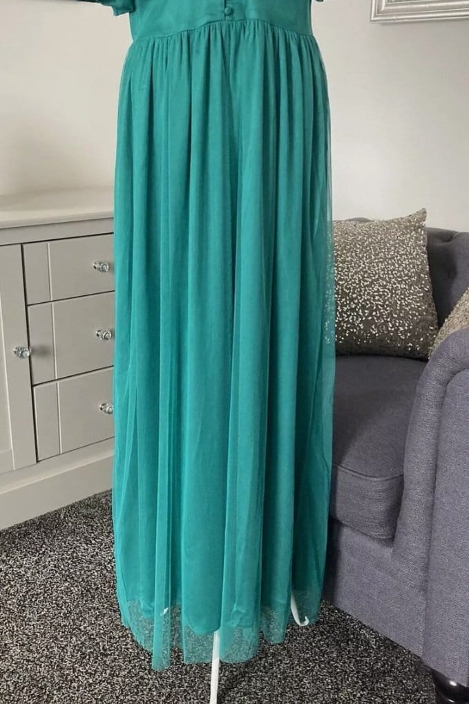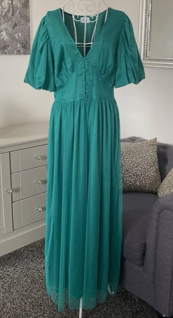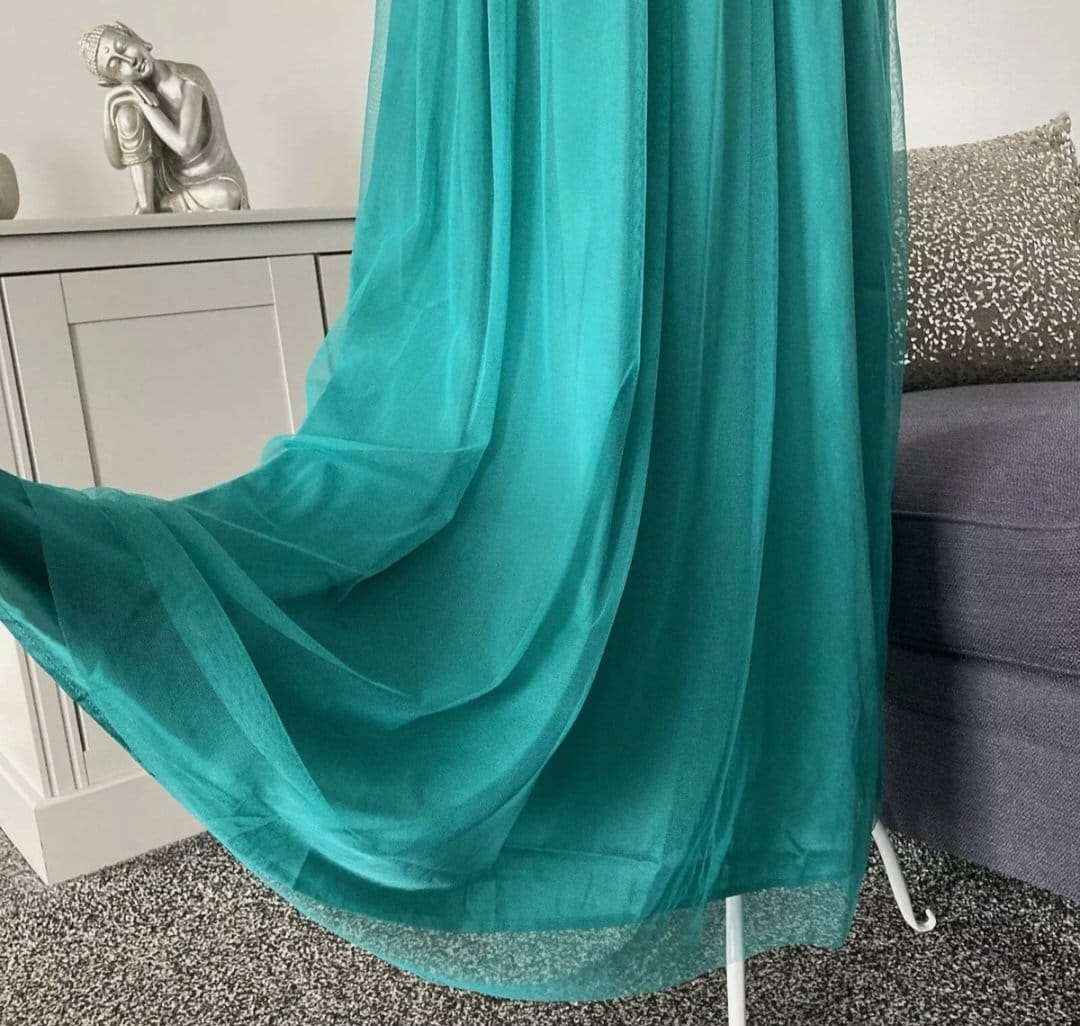 Rochie Midaxi de ocazie din tul cu mâneci scurte,cu decolteu în V,Verde smarald, 40 EU | 300 lei