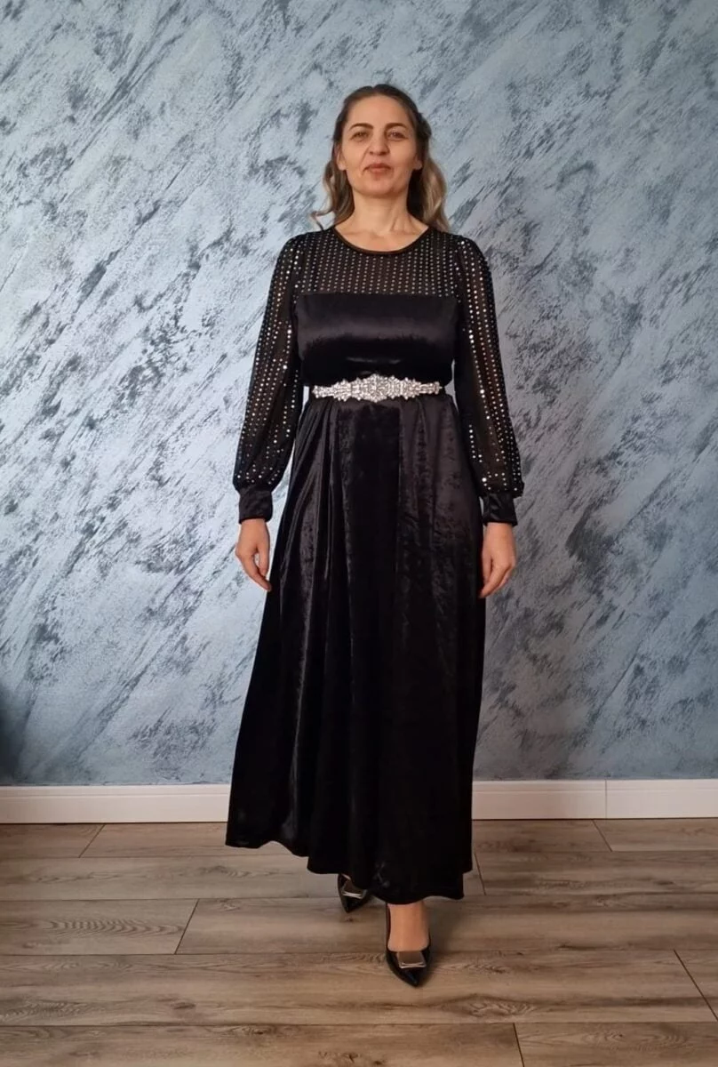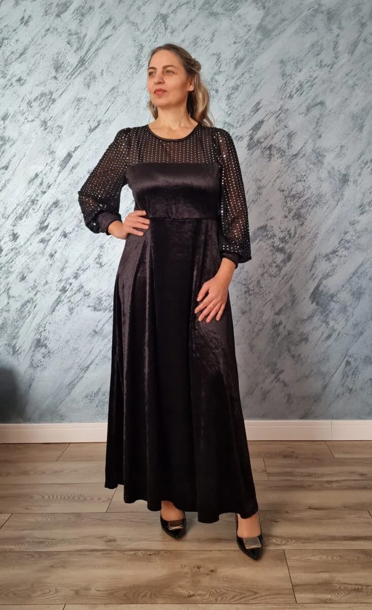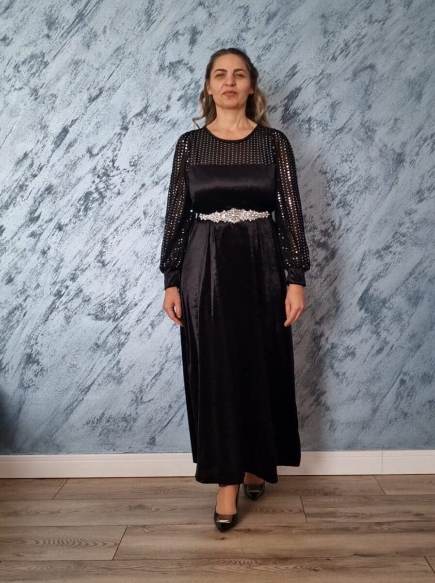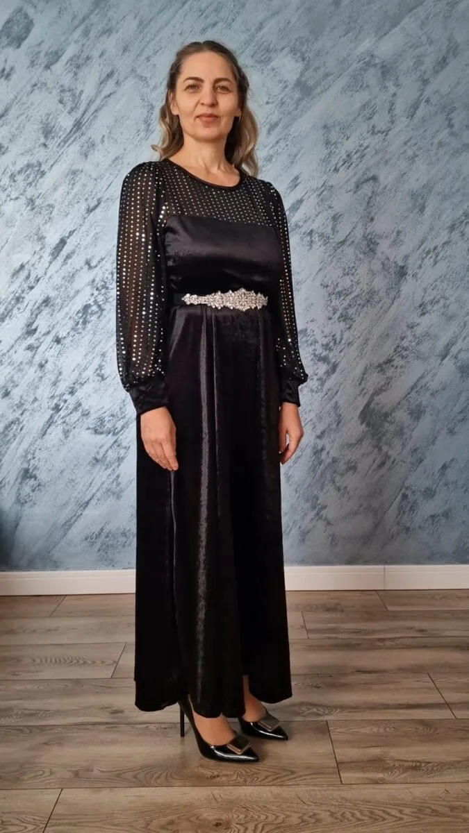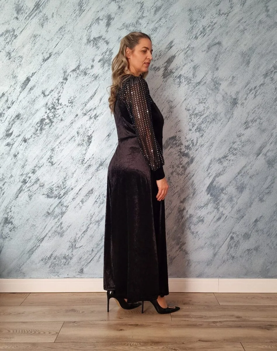 Rochie neagra lunga | Rochie catifea | Rochie eleganta | 250 – 200 lei