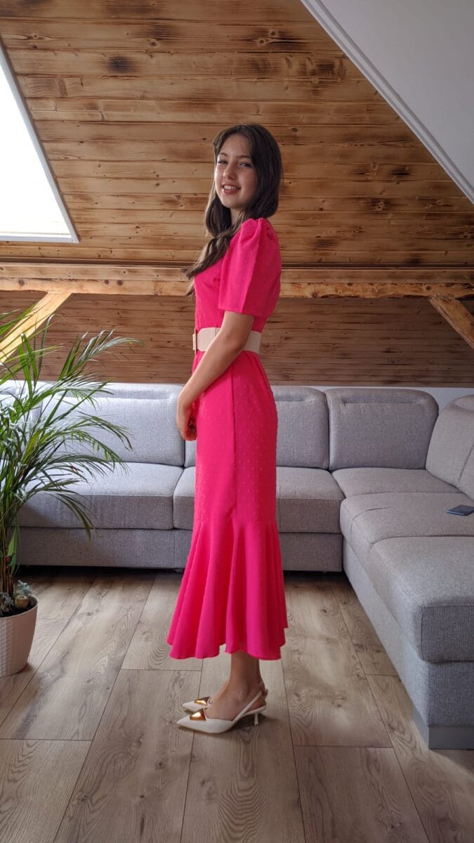 Rochie roz | Rochie eleganta roz | Rochie roz pudra midi | XS-S | 200 lei