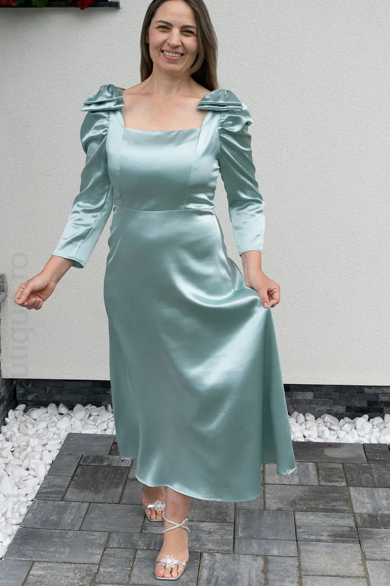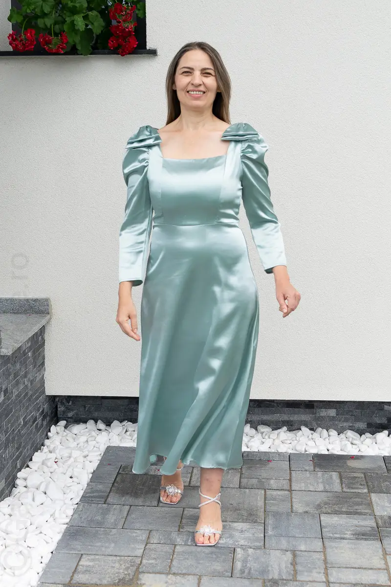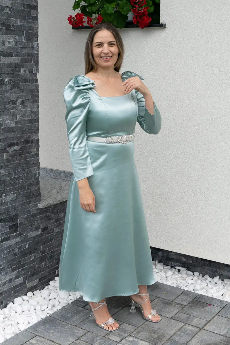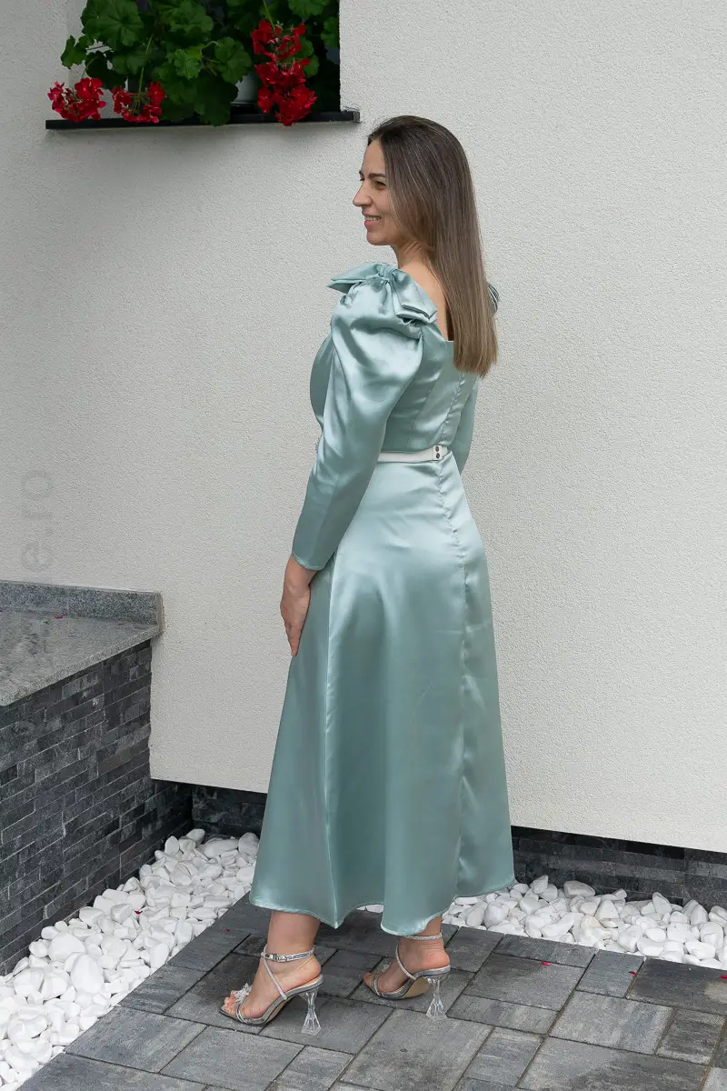 Rochie satin verde | Rochii marimi mici elegante | 250 – 230 lei