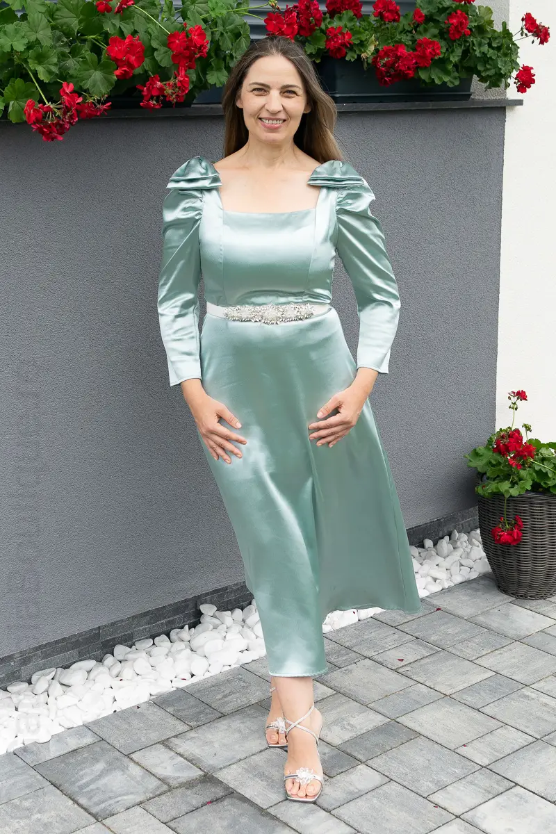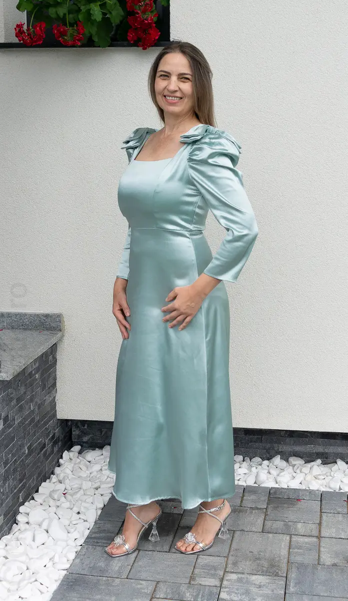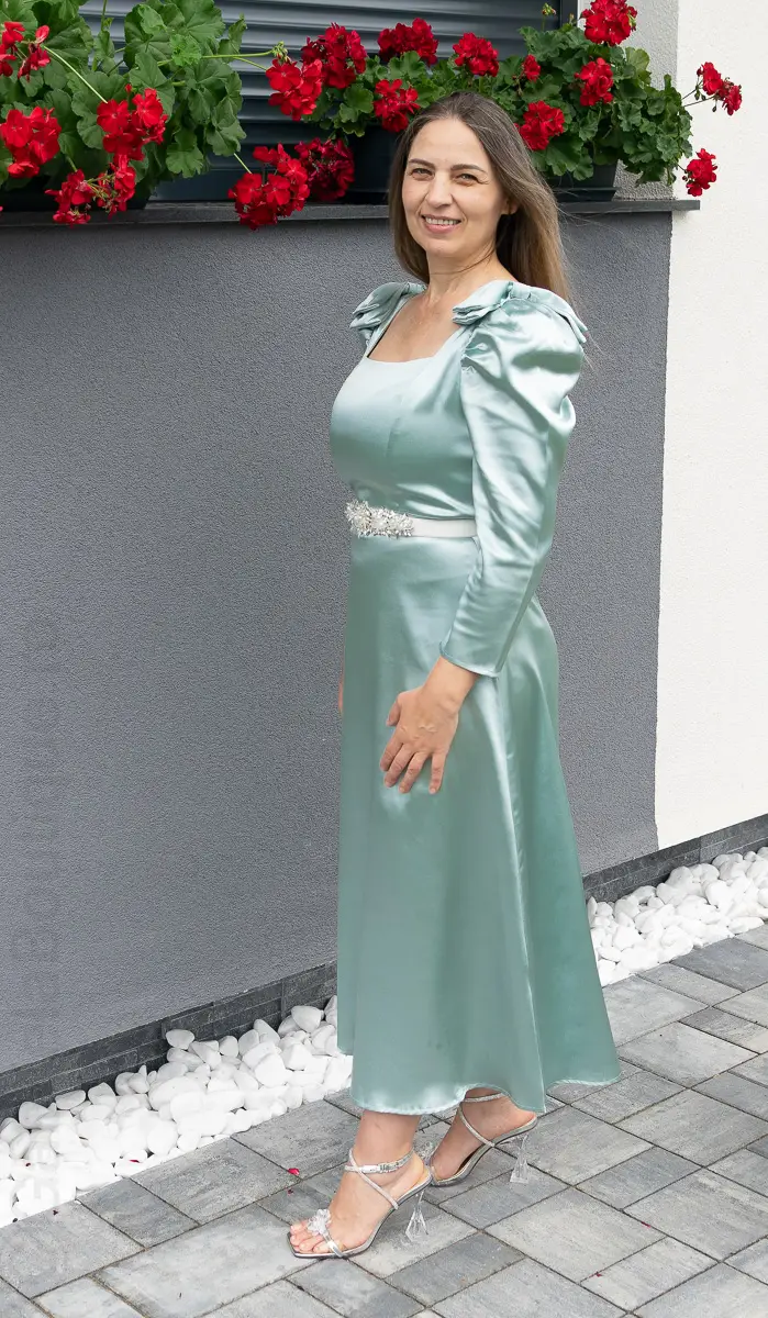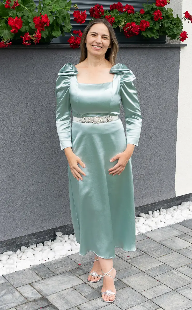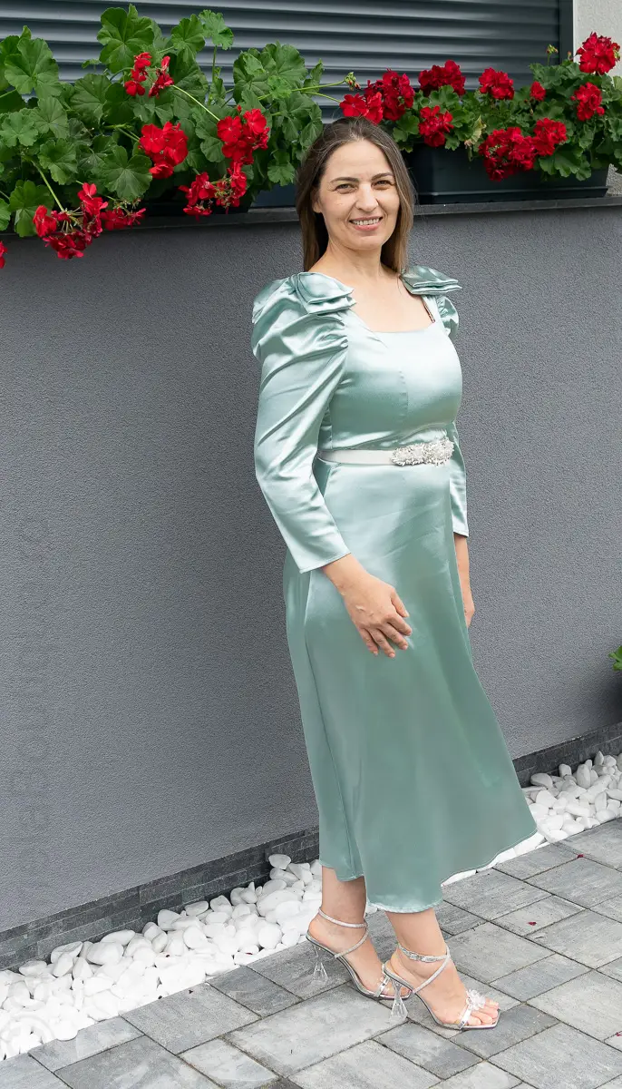 Rochie satin verde | Rochii marimi mici elegante | 250 – 230 lei