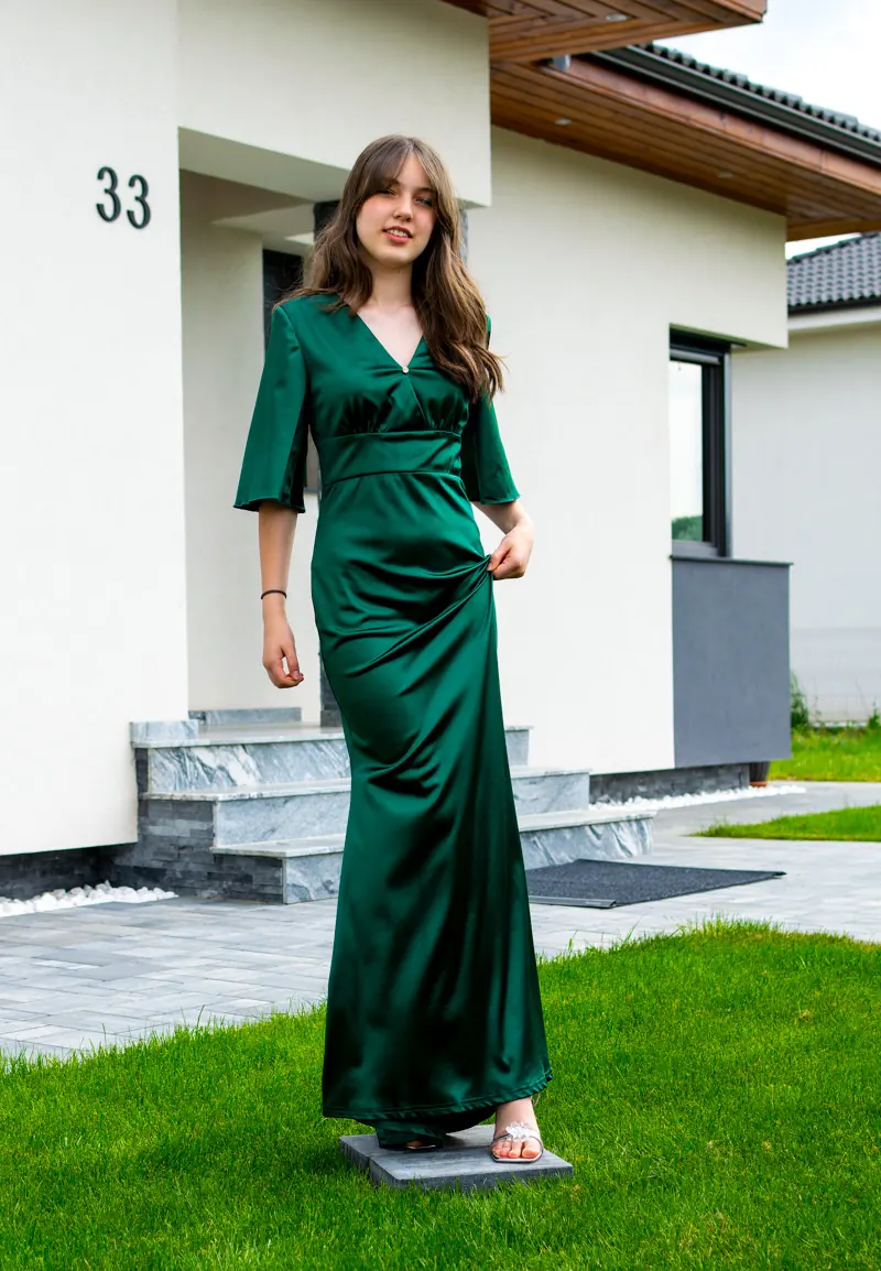 Rochie verde satin | rochii satin elegante | rochie satin roz | rochie satin lunga | 299 lei