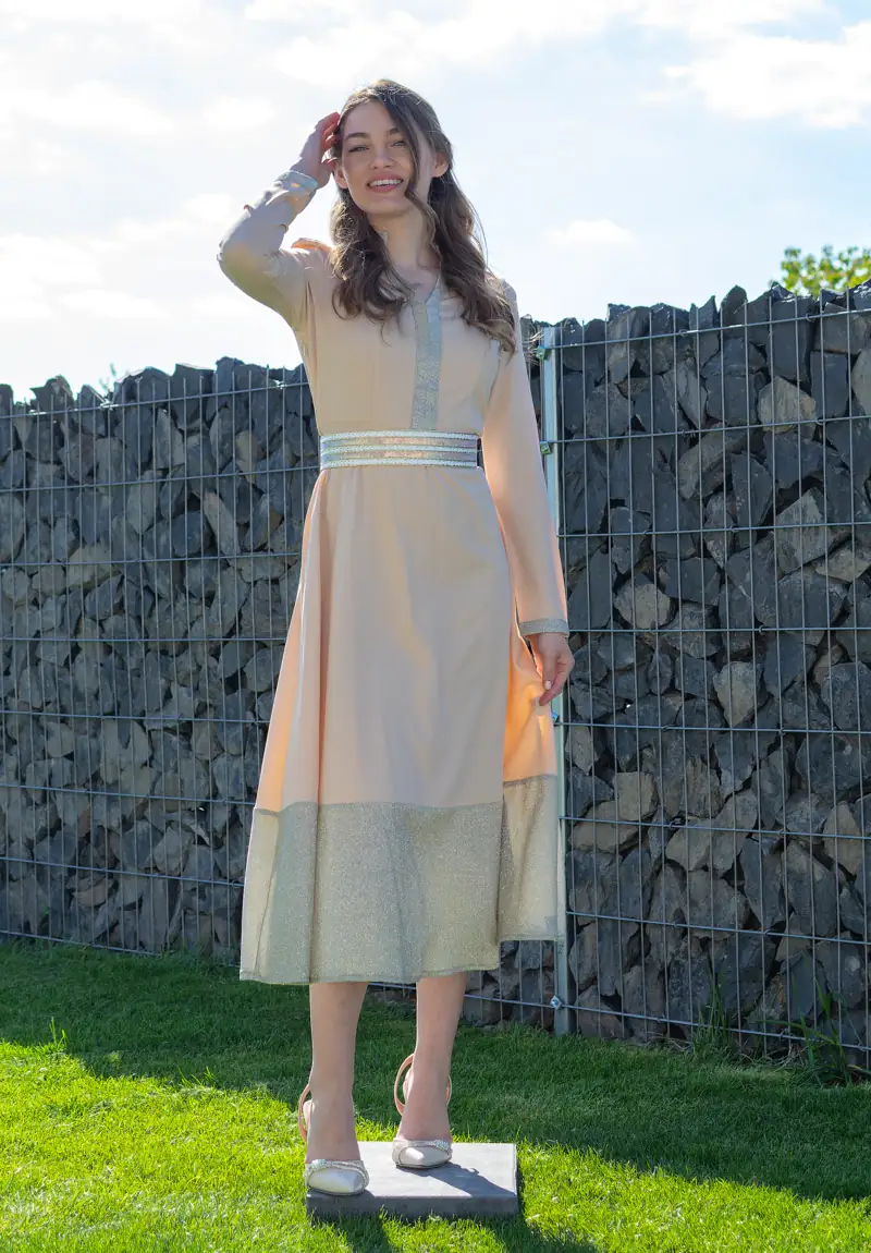 Rochii crem cu mâneci lungi | Rochia vine fără curea | 220 – 100 lei