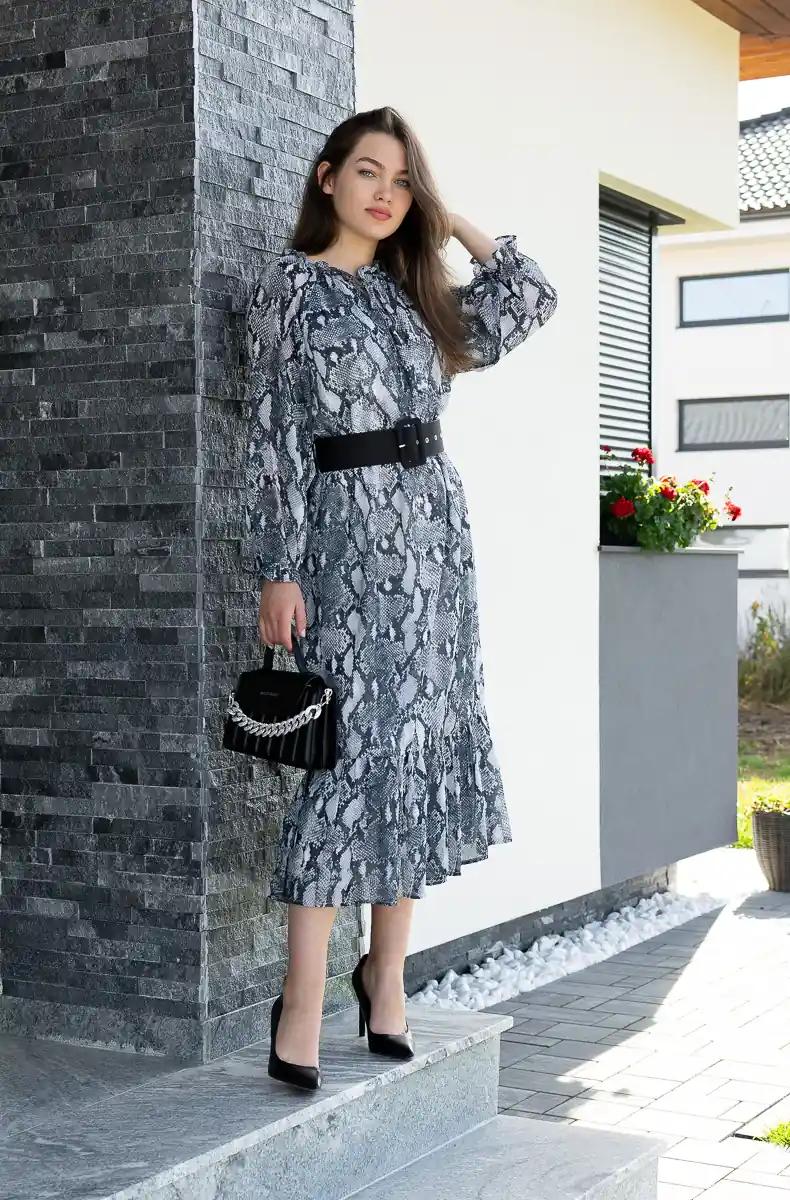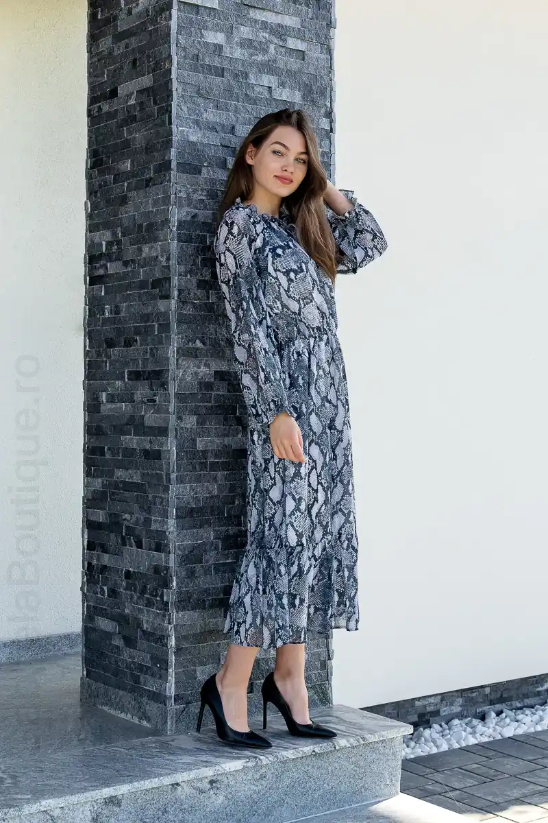 Rochii elegante cu maneca lunga | rochie gri cu imprimeu | 170 lei